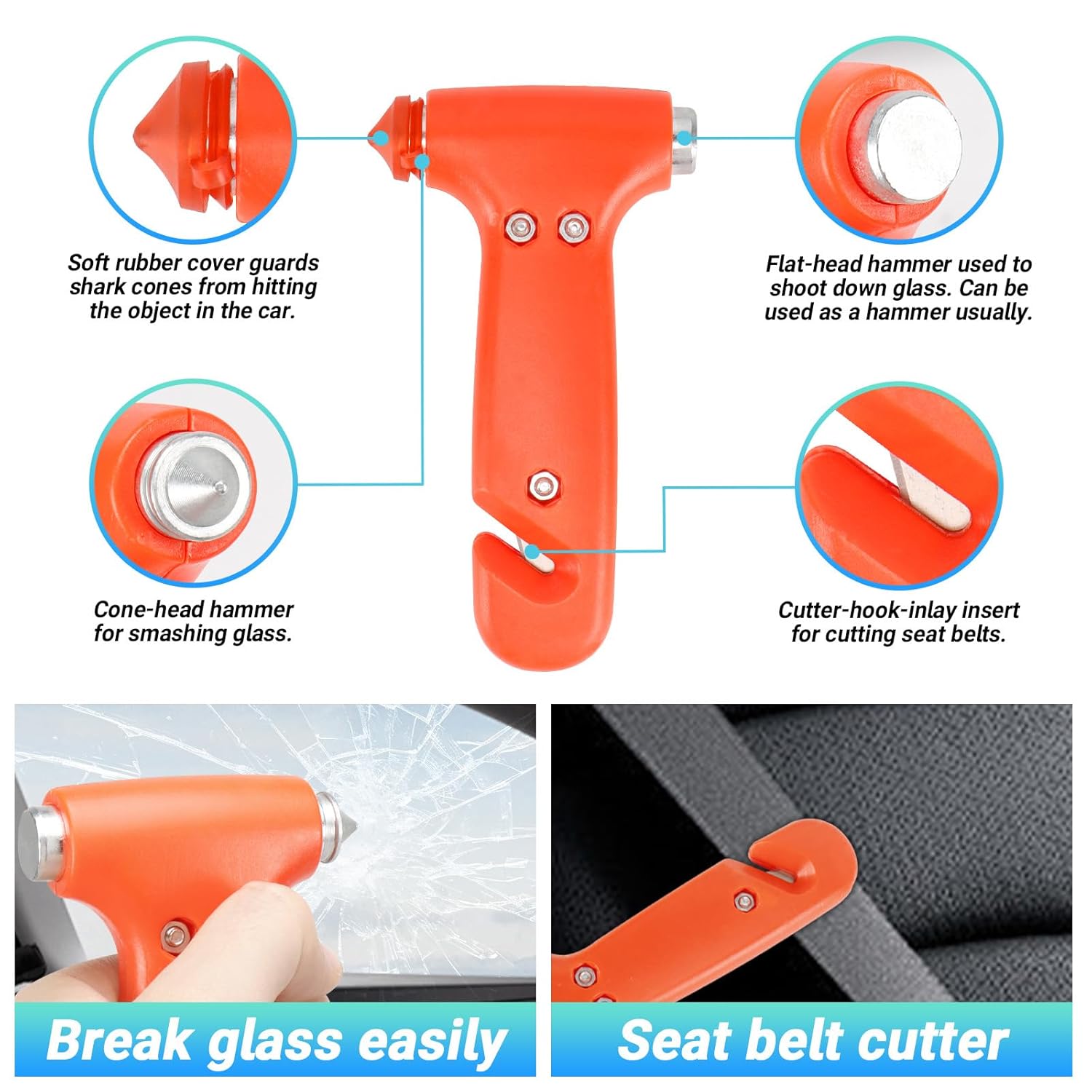 Além disso, o kit de ferramentas que acompanha o produto foi aprimorado com um quebra-vidros multifuncional. O martelo de cabeça plana pode ser utilizado para quebrar vidro e também como um martelo convencional, enquanto o martelo de cabeça cônica é ideal para estilhaçar vidro. O gancho de faca embutido serve para cortar cintos de segurança, proporcionando uma solução prática e segura em situações de emergência.