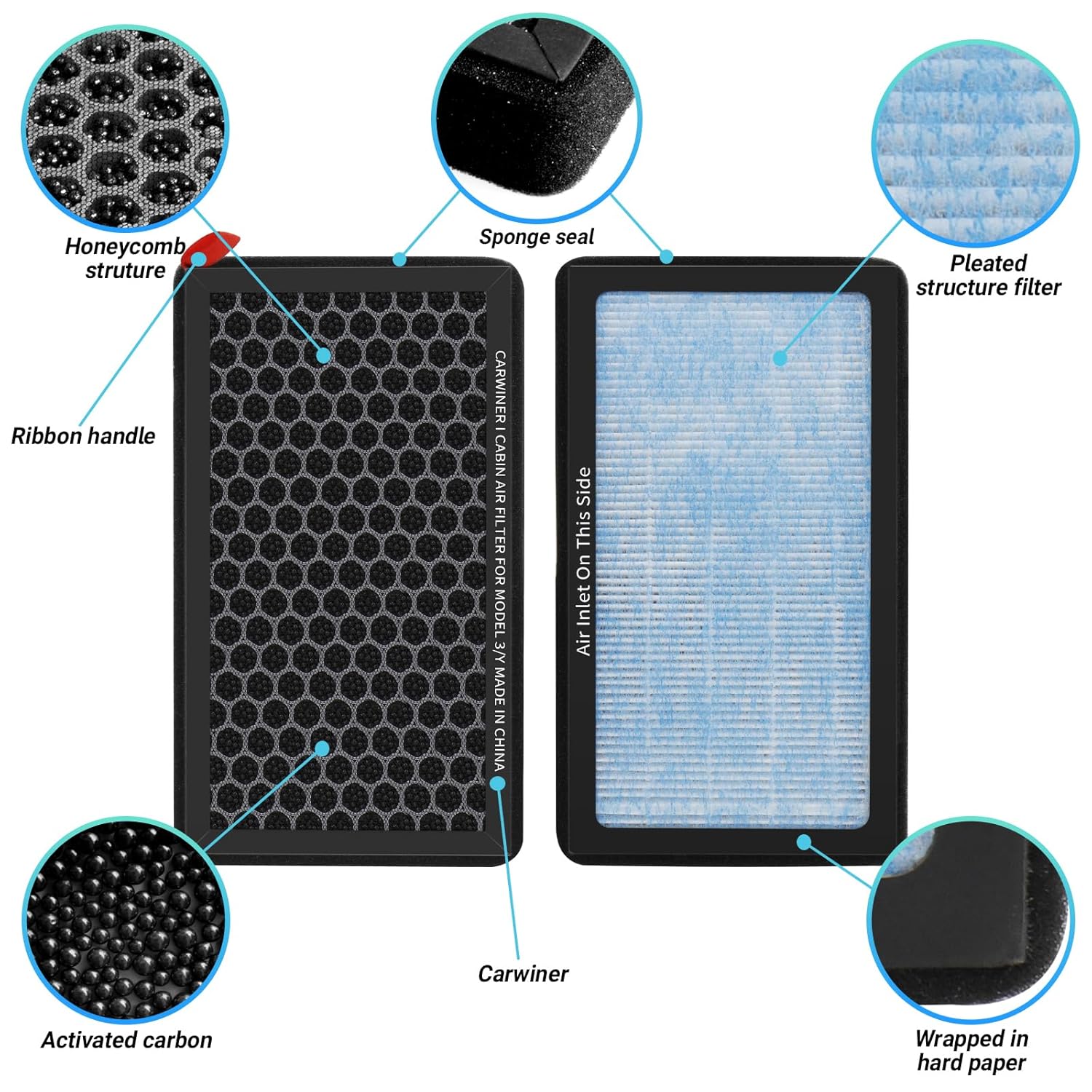 Descrição do Produto: Filtro de Ar da Cabine Carwiner 2PCS para Tesla Model 3 e Model Y com Carvão Ativado e Filtro de Entrada HEPA