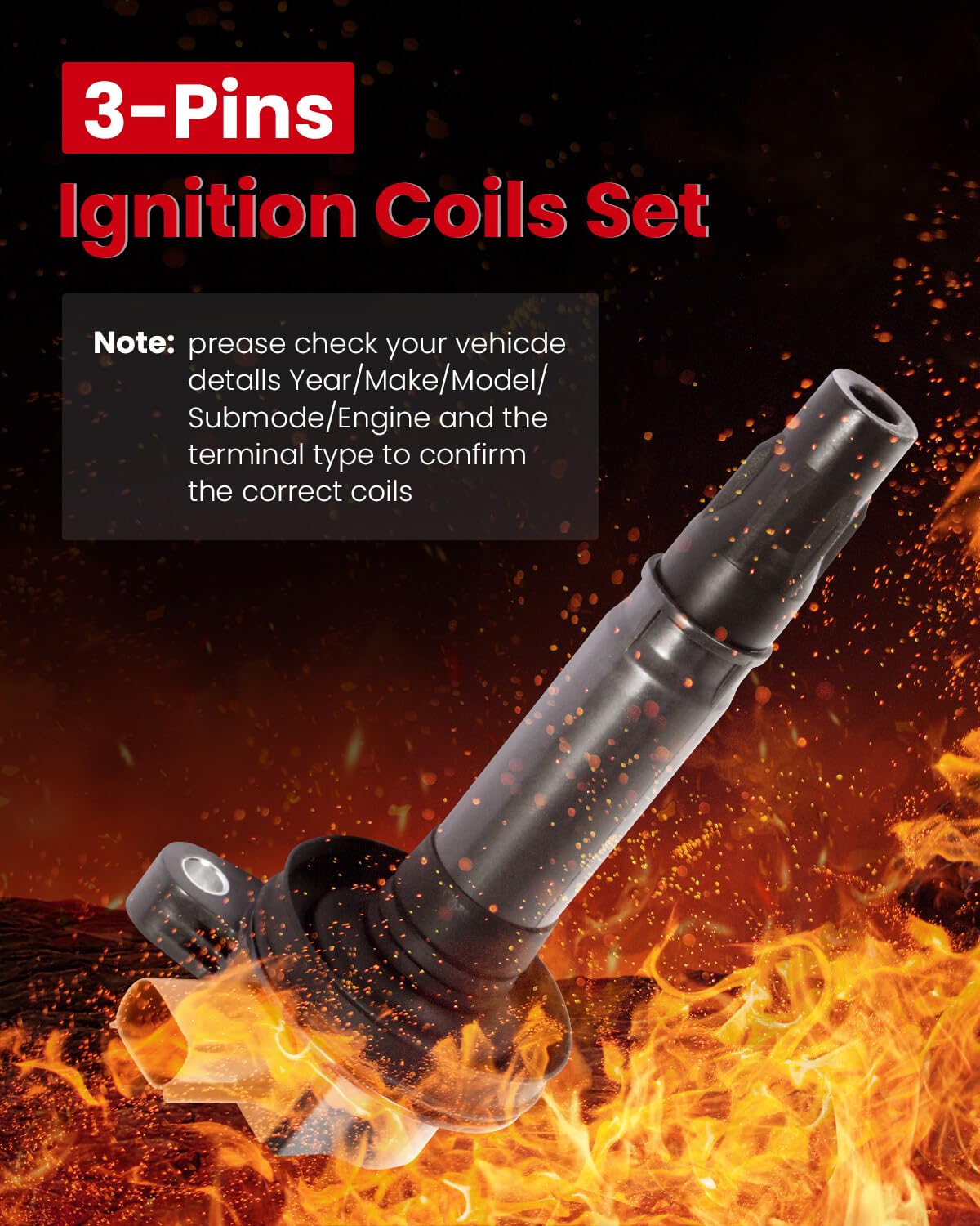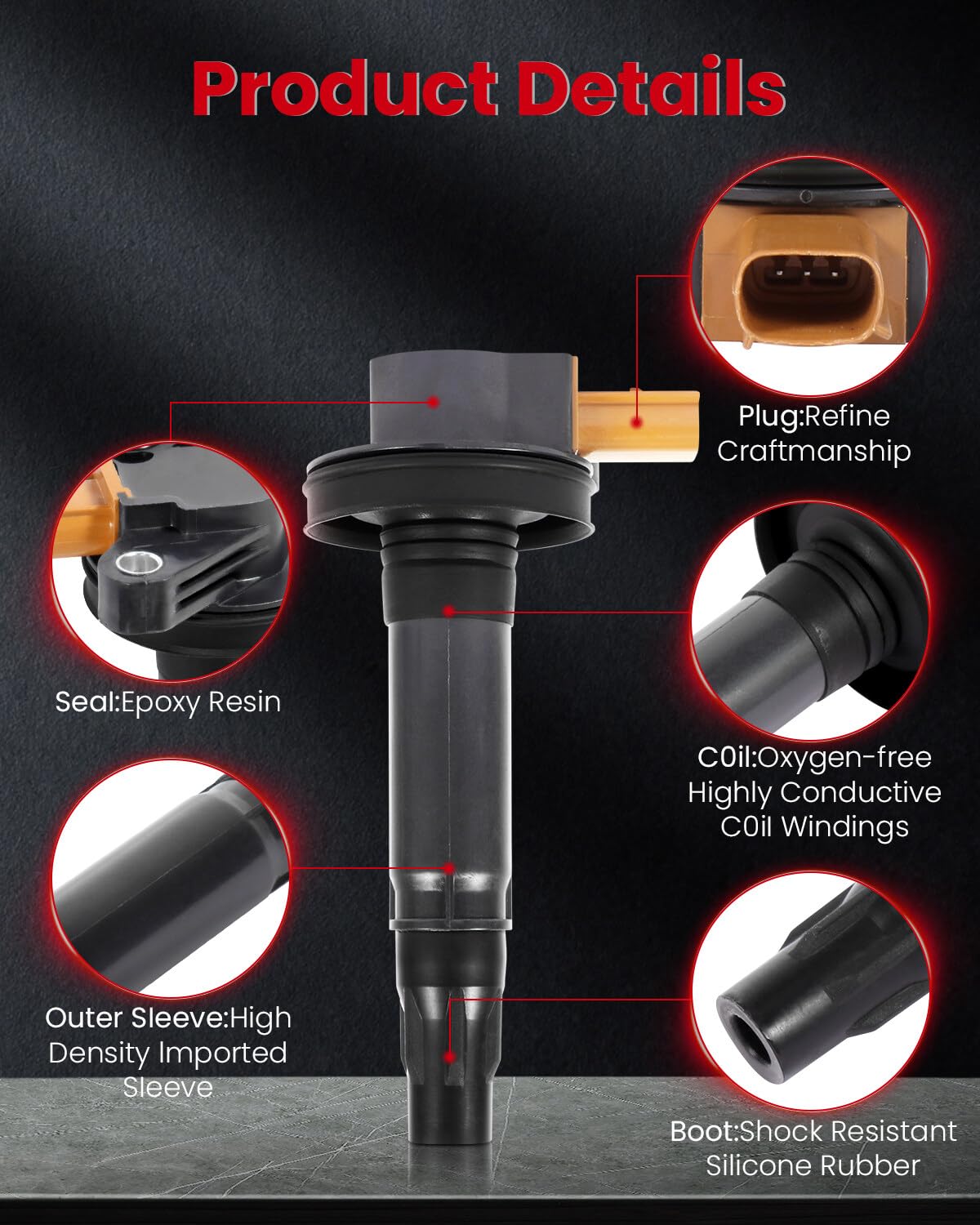 [Excellent Function]: Após percorrer cerca de 50.000 quilômetros, as bobinas do seu motor podem começar a se degradar, resultando em falhas de ignição, marcha lenta irregular e redução da eficiência de combustível. Nossa tecnologia avançada de bobinas de ignição direta é projetada para superar as peças OEM, oferecendo instalação fácil e desempenho aprimorado do motor. Desfrute de partidas a frio melhoradas e operação mais suave.