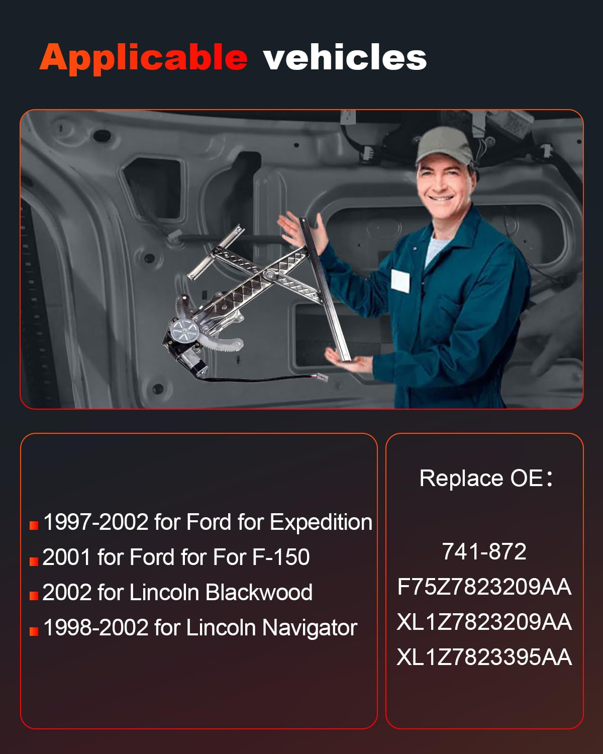 O Regulador de Janela Elétrica CCIYU com Motor é a solução ideal para quem busca qualidade e durabilidade na substituição do regulador de janela do lado do motorista em veículos Ford. Compatível com modelos de 1997 a 2002 do Ford Expedition e 2001 do Ford F-150, além de outros modelos como Lincoln Blackwood e Lincoln Navigator, este produto é projetado para oferecer um desempenho excepcional e uma instalação descomplicada.