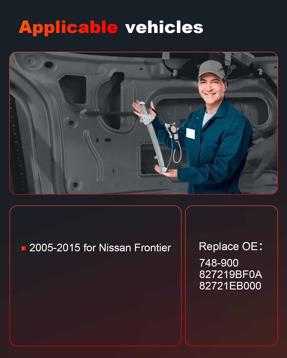 - Número OEM: 748-900, 827219BF0A, 82721EB000 – um regulador de janela de substituição que atende aos rigorosos padrões de qualidade do setor.