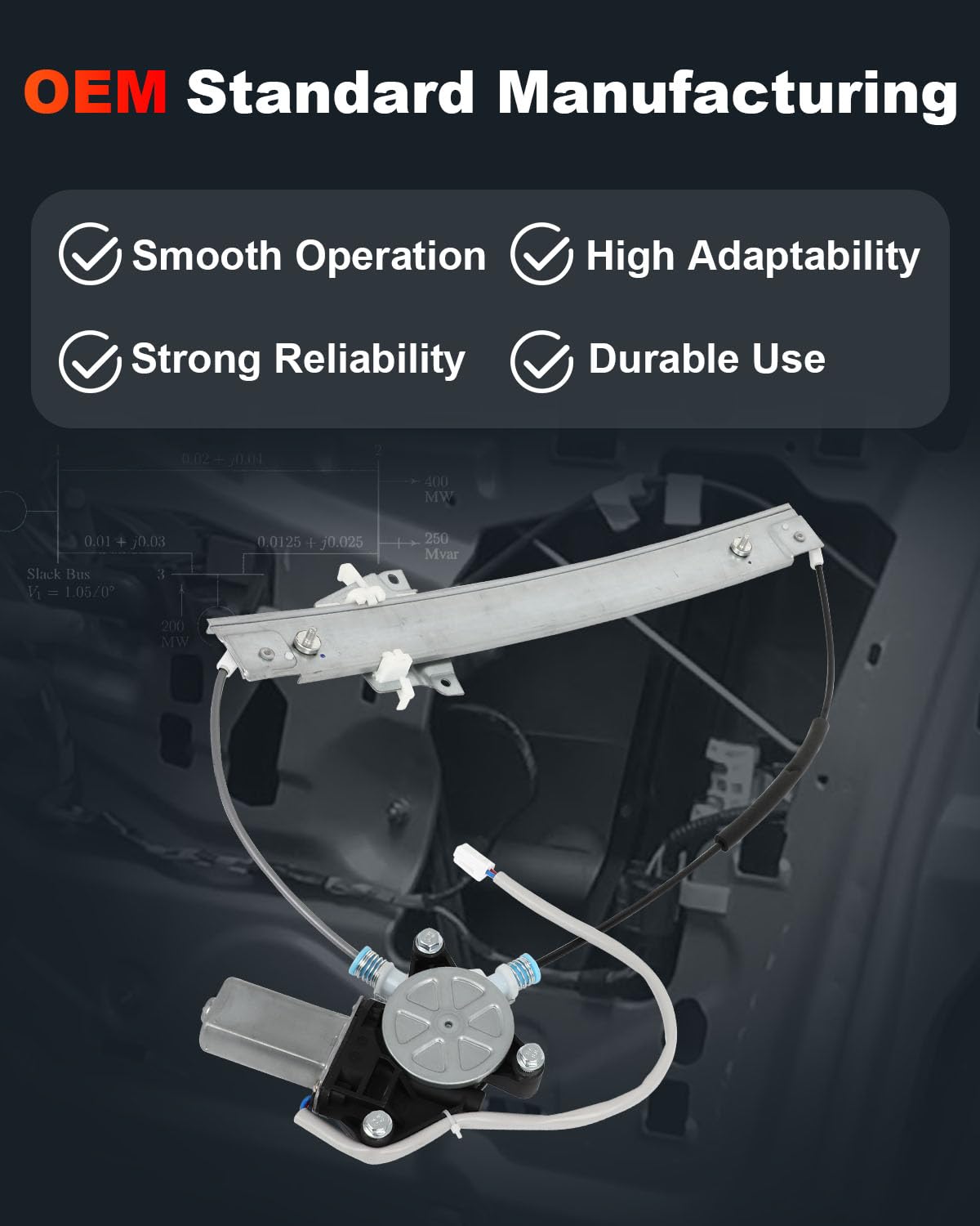 - Substituição OE: O regulador de janela foi avaliado milhares de vezes em portas de carros reais para verificar sua durabilidade e desempenho sob cargas cíclicas, com operação de elevação suave e fácil ajuste.