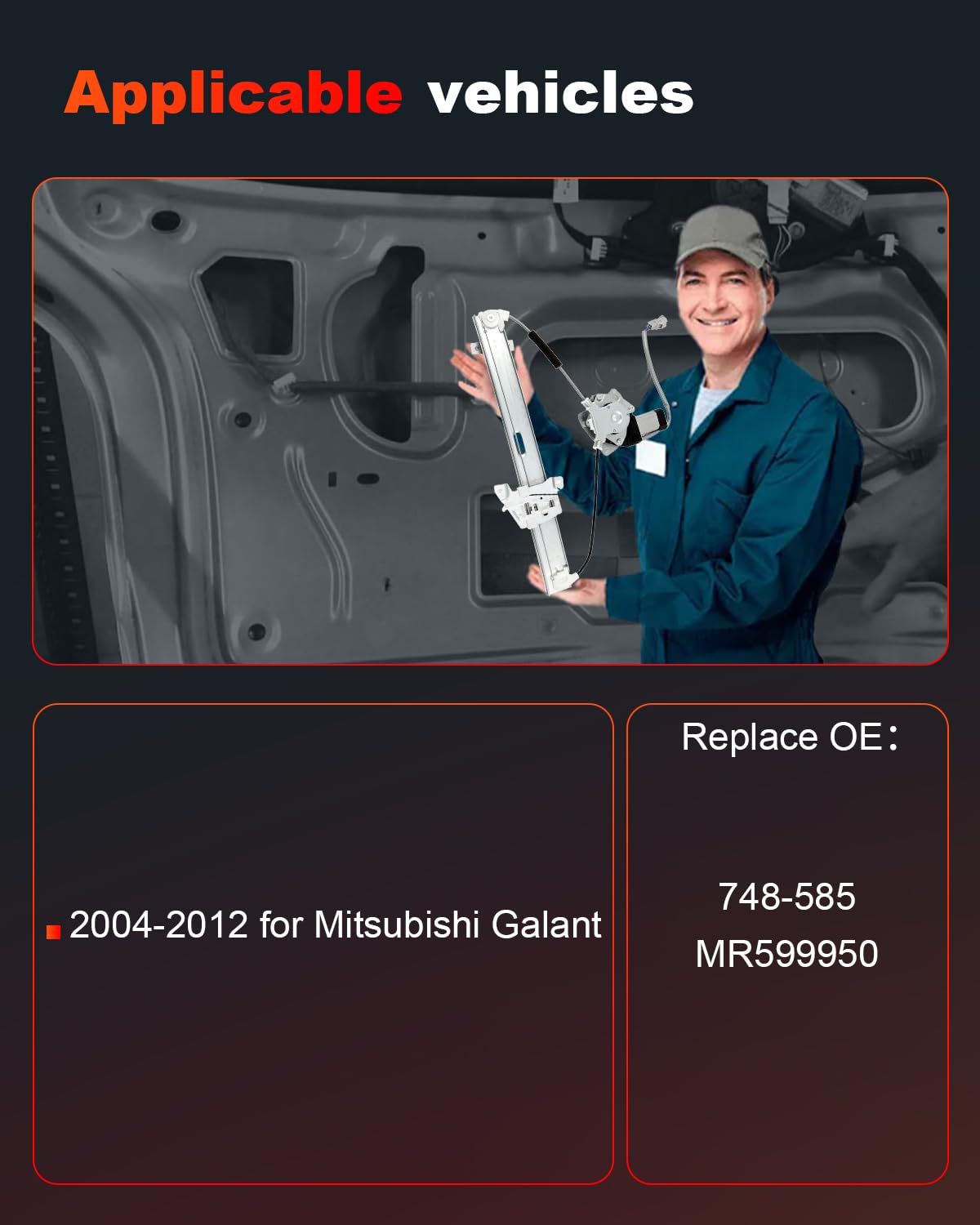 - Compatível com: Mitsubishi Galant 2004, 2005, 2006, 2007, 2008, 2009, 2010, 2011, 2012. Este regulador de janela é uma substituição direta, garantindo que você tenha um ajuste perfeito.