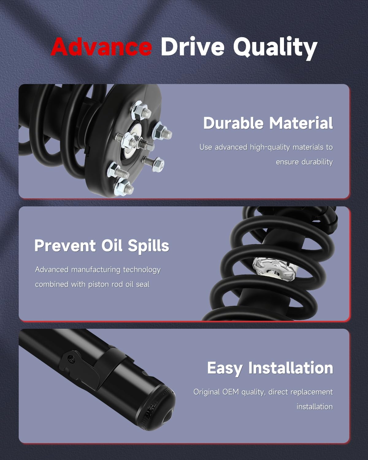 ‎Advanced material, Easy installation, Excellent oil seal, High-strength piston rod, More stable and durable
