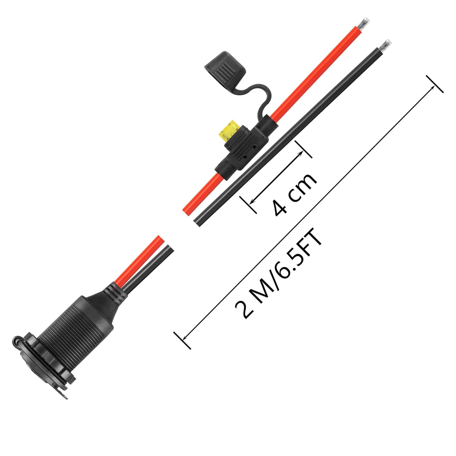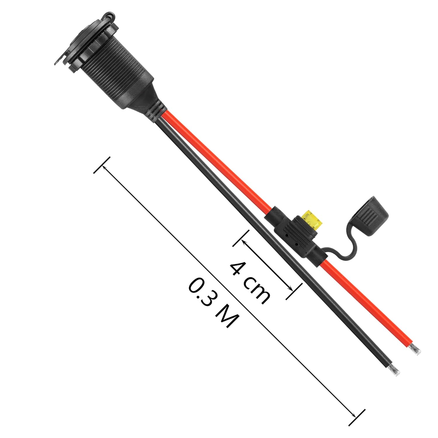 Cabo Extensor de Soquete de Isqueiro CERRXIAN 12V/24V 20A 13AWG à Prova d’Água – 2M