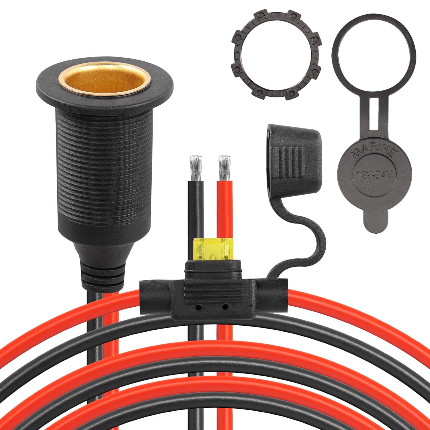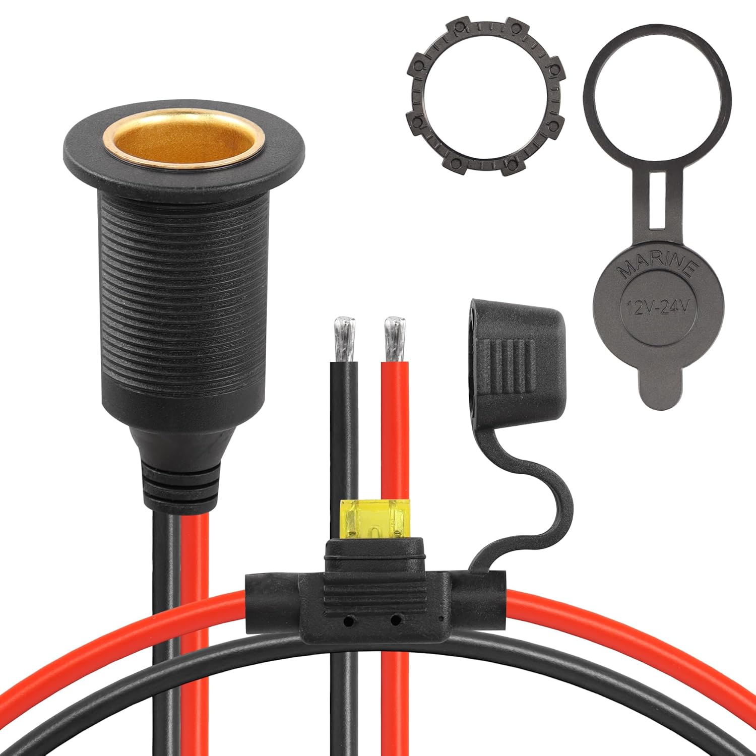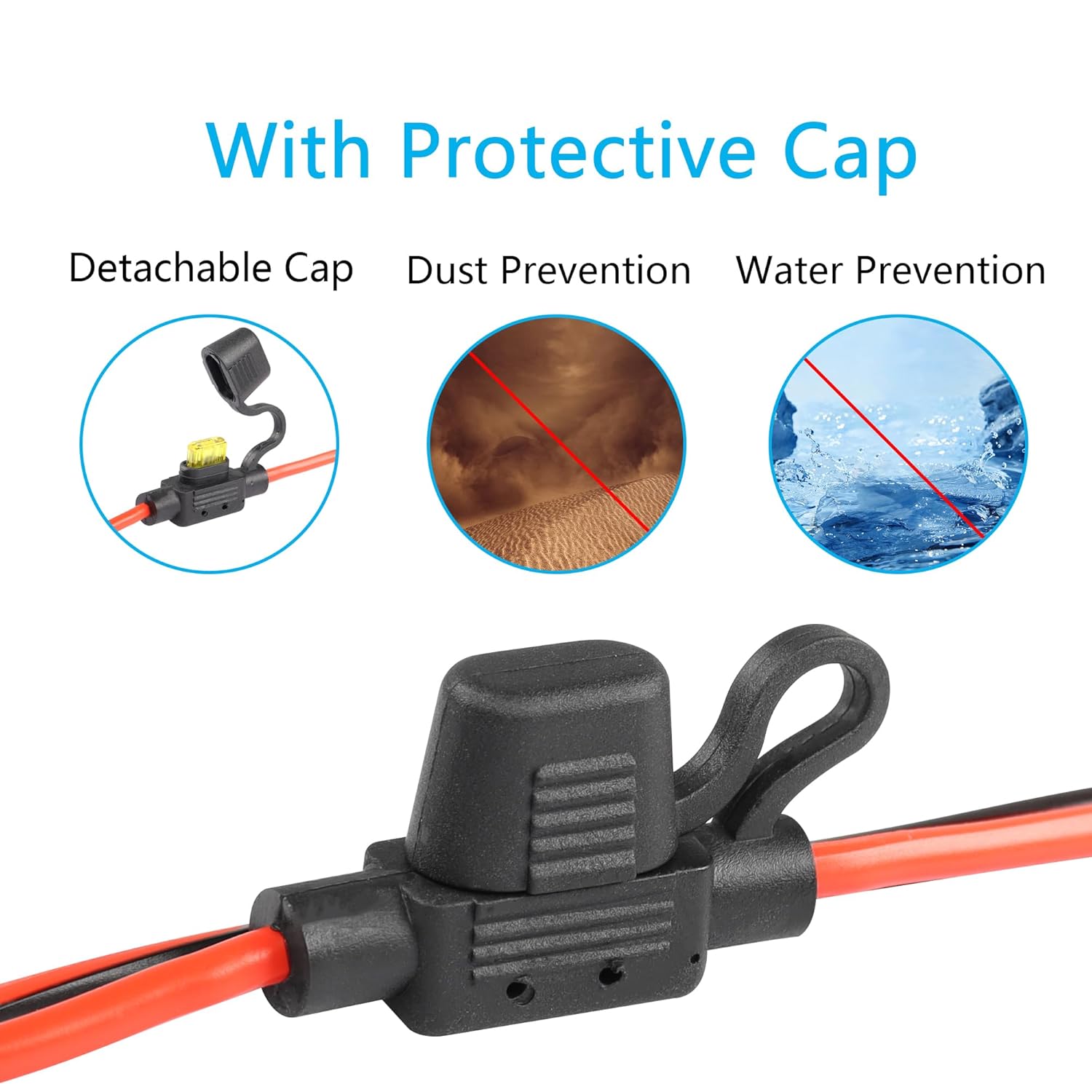‎Waterproof design, high current handling, built-in fuse protection, fixed positioning, dustproof/waterproof cap