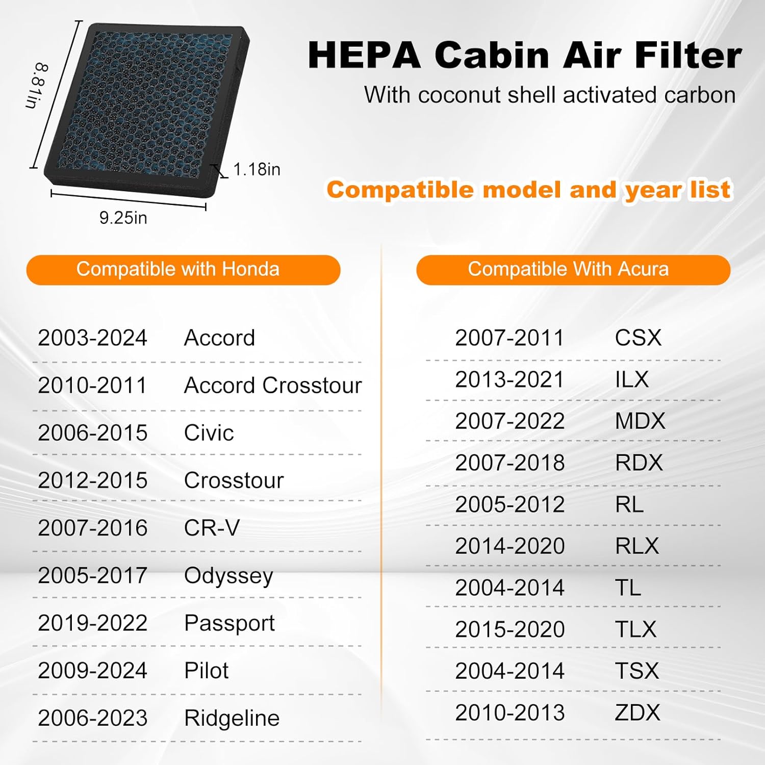 Descrição do Produto: Filtro de Ar do Cabine CF10134 CP134 com Carvão Ativado, Compatível com Honda