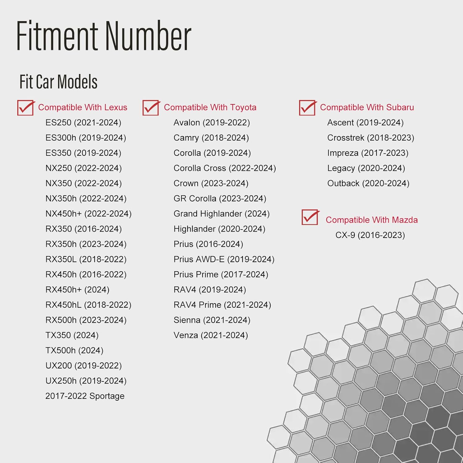 – Modelos Compatíveis: 2019-2023 Ascent, 2018-2023 Crosstrek, 2017-2023 Impreza, 2020-2023 Legacy, 2020-2023 Outback.