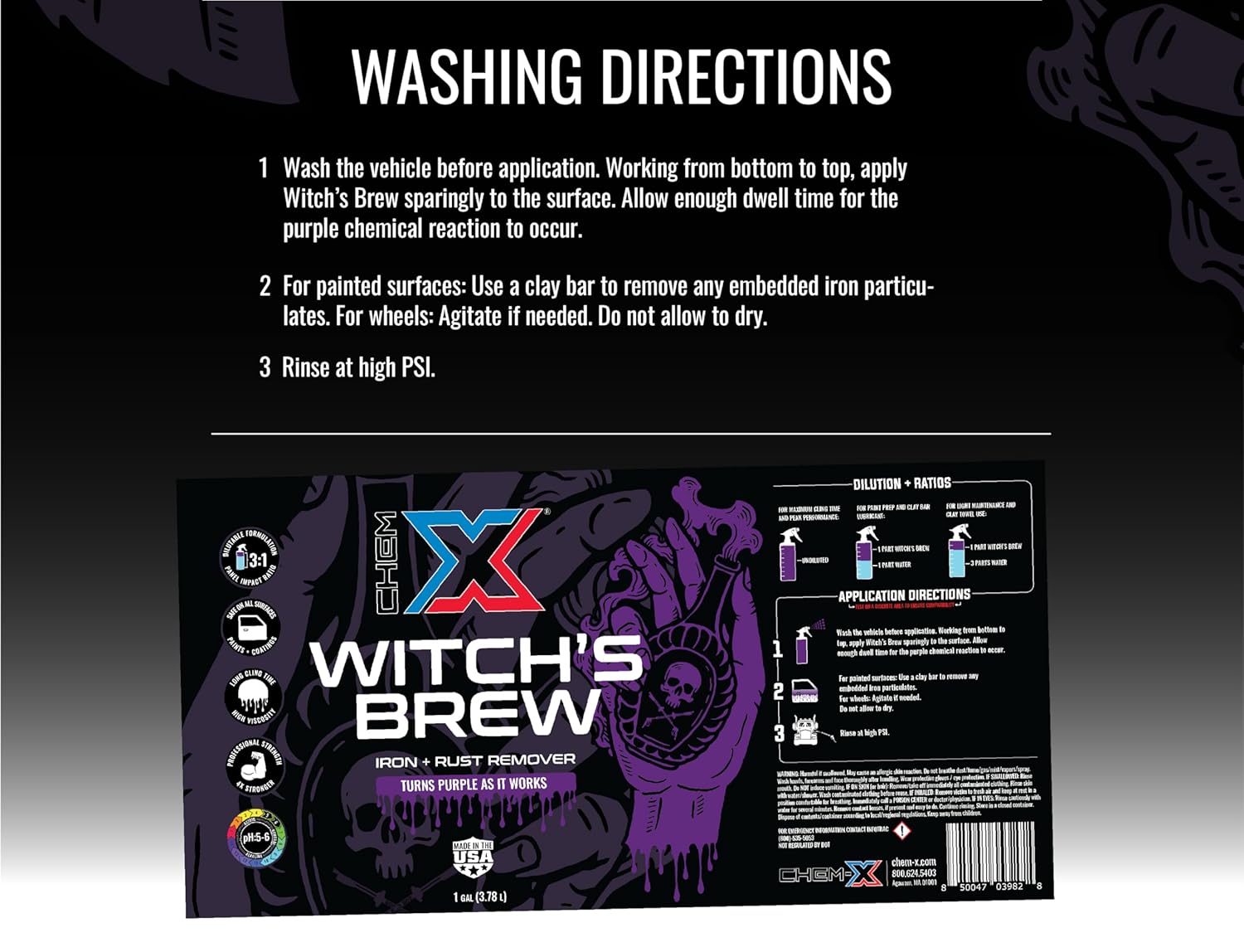 Chem-X Witch’s Brew: Removedor de Ferro e Ferrugem para Veículos, 4X Força (1 Galão)
