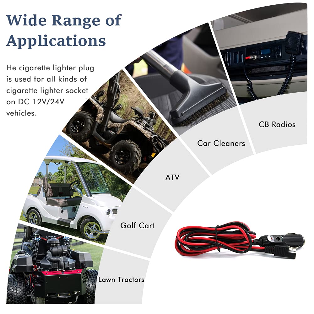 Este cabo é compatível com quase todos os modelos de soquete de isqueiro, sendo ideal para uma ampla gama de veículos, incluindo carros, motos e até mesmo aplicações em DC 12V, como aquecedores de assento, compressores de ar, coolers elétricos, aspiradores de pó, bombas de ar, refrigeradores de RV, TVs de carro e sistemas de energia solar. Sua versatilidade o torna um acessório indispensável para quem viaja ou utiliza equipamentos elétricos em movimento.