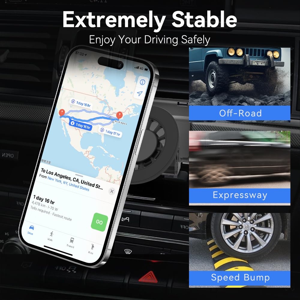 Resposta: Sim, o suporte foi projetado para manter seu celular seguro mesmo em condições de estrada desafiadoras, graças ao seu forte magnetismo.