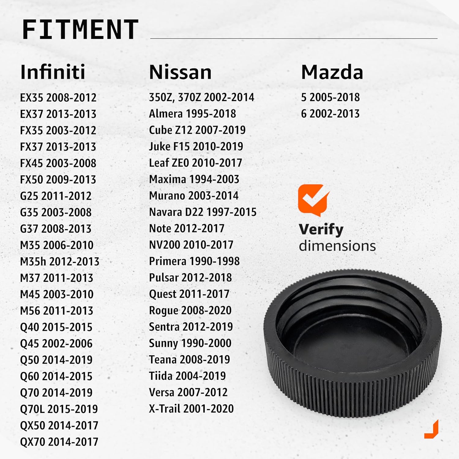 Compatível com uma ampla gama de veículos Nissan, como o 350Z e 370Z (2003-2014), Murano (2003-2014), Juke (2011-2017), Leaf (2011-2017), Rogue (2008-2020) e Sentra (2012-2019), bem como modelos da Infiniti, como EX35 (2008-2012) e FX35 (2003-2012), a tampa Click é uma escolha versátil para quem precisa de uma peça de reposição. Além disso, é compatível com alguns modelos da Mazda, como o Mazda 5 (2005-2018) e 6 (2002-2013).