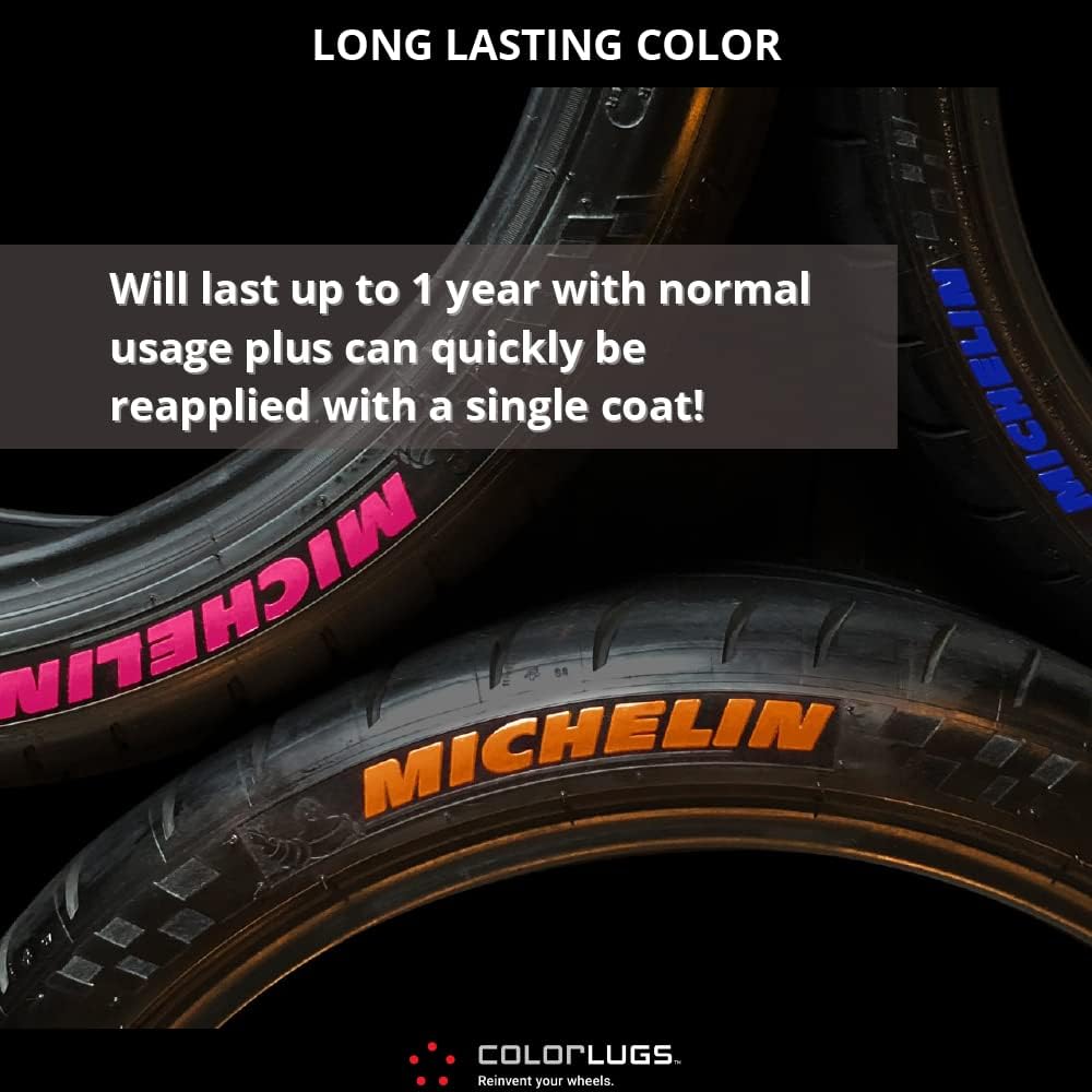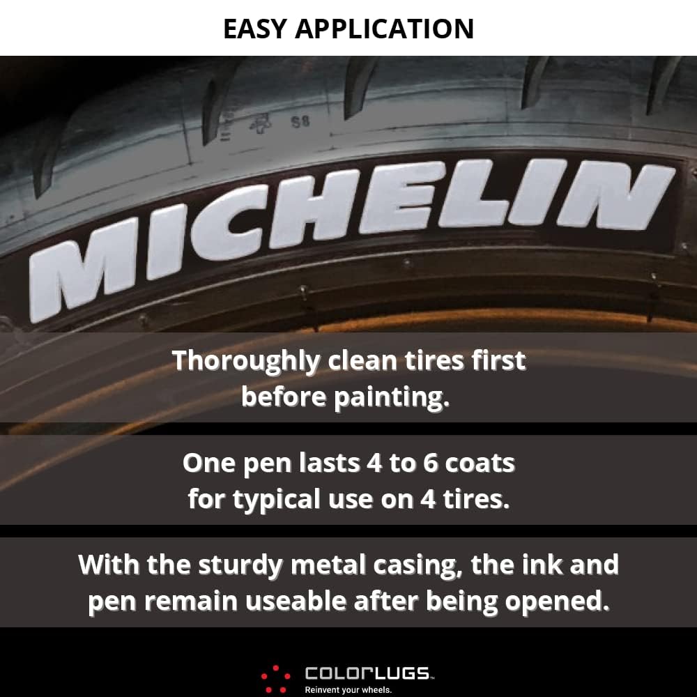 O ColorLugs RubberWriter Paint Pen é formulado para durar até um ano com uso normal, e sua aplicação é simples: basta limpar bem os pneus antes de pintar. Cada caneta é capaz de cobrir de 4 a 6 camadas em pneus típicos, garantindo que você tenha tinta suficiente para um trabalho completo. O design robusto da embalagem metálica mantém a tinta e a caneta utilizáveis mesmo após serem abertas, evitando desperdícios.