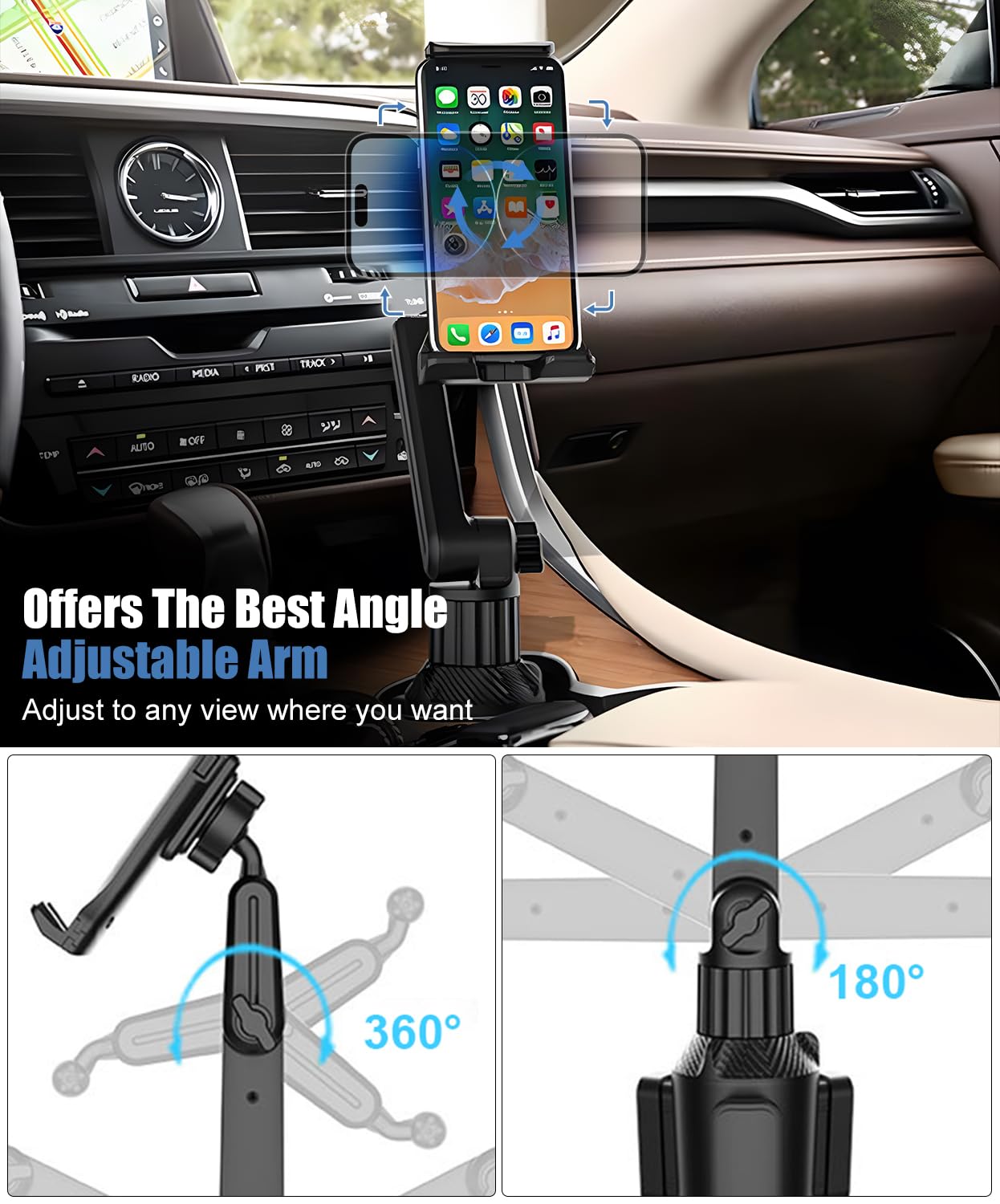 O suporte para telefone de copo para carro é a inovação que você esperava para tornar suas viagens mais seguras e práticas. Com um design ajustável de 360°, este suporte universal é compatível com dispositivos de 4 a 13 polegadas, incluindo smartphones e tablets, como iPhones e iPads. A base expansível, que varia de 2,5″ a 3,54″, se adapta perfeitamente a copos de carro, SUVs, caminhões, carrinhos de golfe e até mesmo em esteiras e poltronas de massagem.
