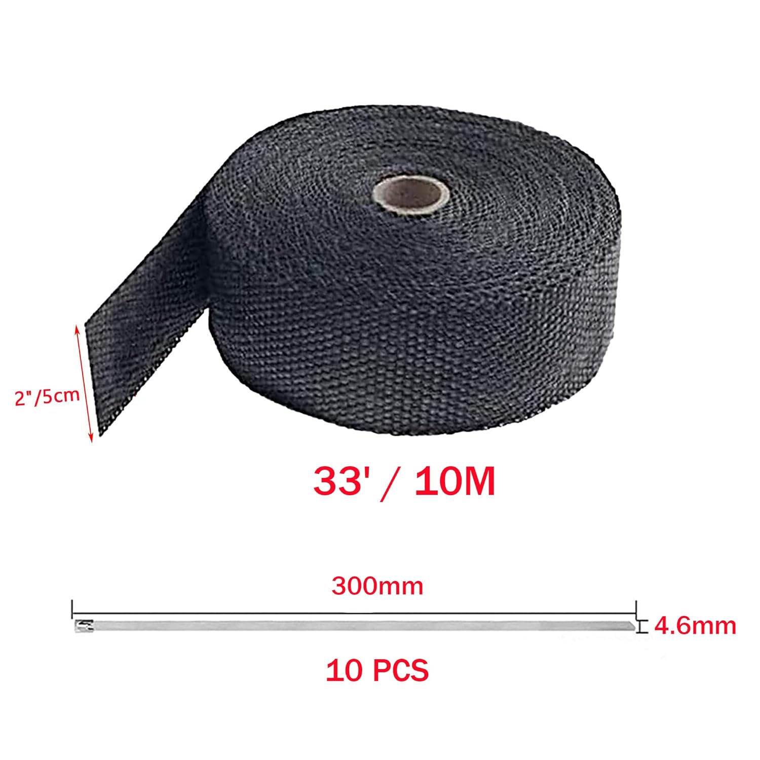 – Incluso no Kit: 1 rolo de fita de calor e 10 laços de aço inoxidável auto-bloqueantes.