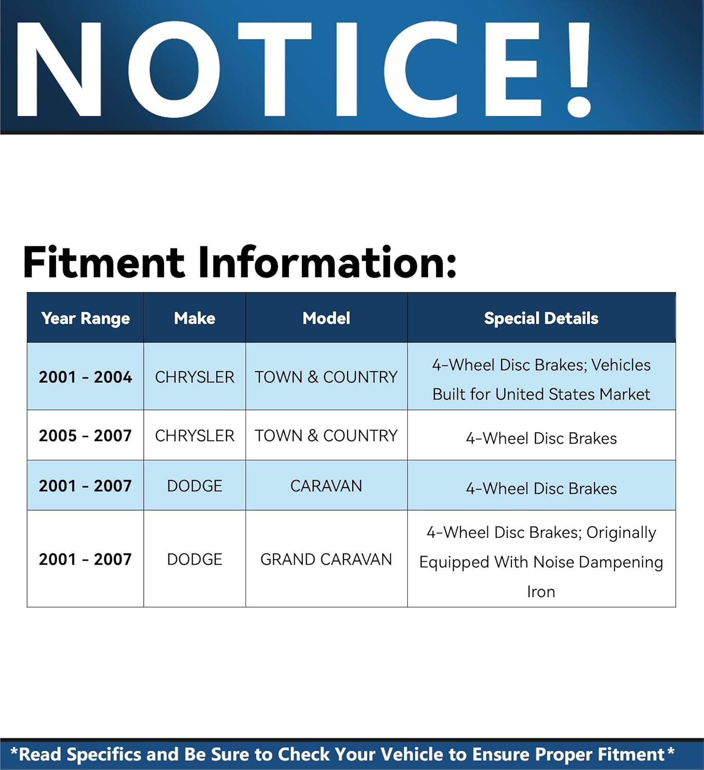 O Kit de Freios Detroit Axle é a escolha ideal para proprietários de Chrysler Town de 2001 a 2007 que buscam desempenho superior e segurança nas estradas. Este kit é projetado especificamente para se encaixar em modelos selecionados, garantindo uma instalação perfeita. Para garantir a compatibilidade, consulte a tabela de ajuste e a descrição do produto.