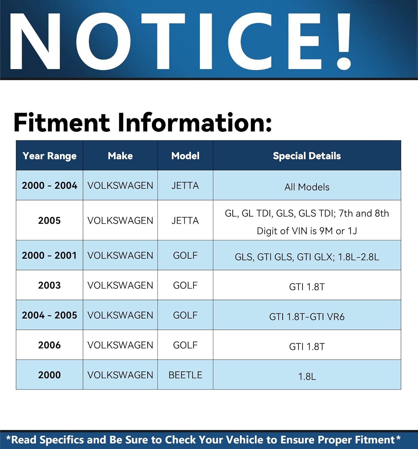 – Compatibilidade: Projetado para Volkswagen Jetta (2000-2005) e Golf (2000-2006), incluindo modelos específicos como GL, GL TDI, GLS, GTI e Beetle.