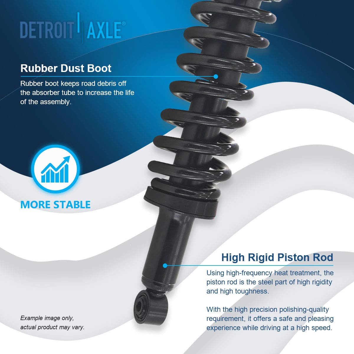 Os Amortecedores e Conjuntos de Molas da Detroit Axle são prontos para instalação, eliminando a necessidade de ferramentas especiais ou trabalho adicional. A Detroit Axle é reconhecida como um fornecedor líder em kits de suspensão e freio, garantindo que todas as peças deste kit sejam compatíveis com o conjunto de montagem do amortecedor dianteiro do Toyota Tundra.