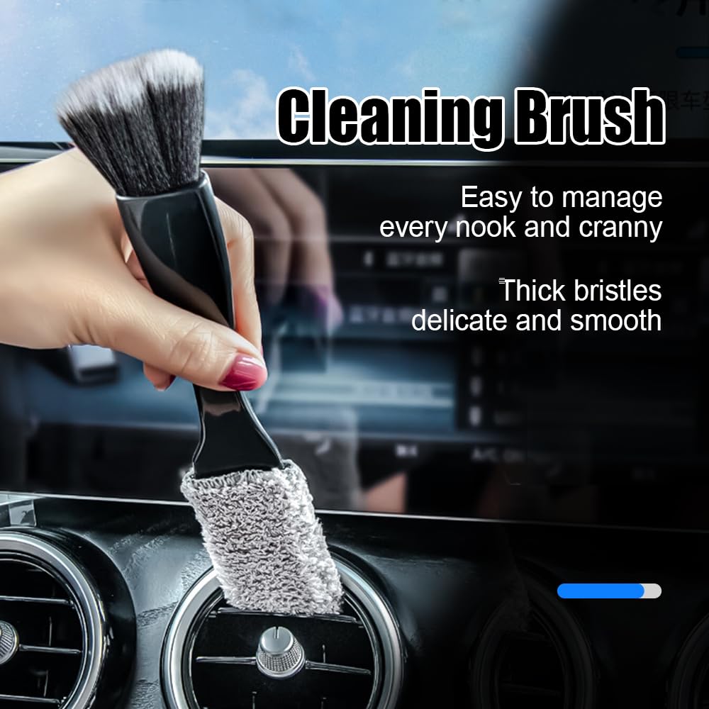 This 2-in-1 brush is designed for detailing the interior of a car, making it a versatile tool for cleaning various surfaces. The soft brush head is perfect for delicate surfaces like the dashboard screen, air vents, and other sensitive areas, while the more robust brush head is excellent for removing dust and debris from harder-to-clean areas.