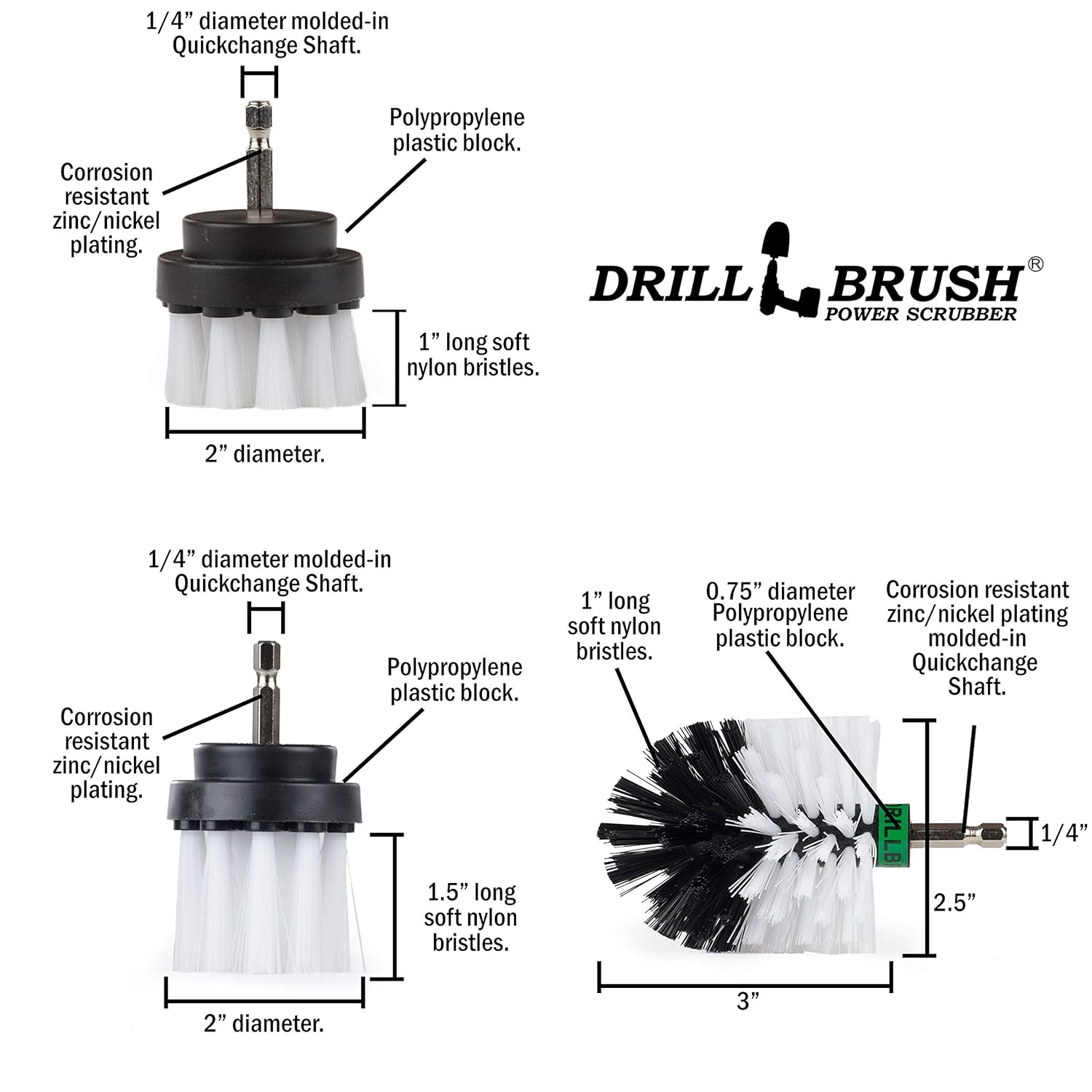 – Composição do Kit: Inclui a escova original Drillbrush Power Scrubber em branco macio, uma MINI Original, escovas de 5 polegadas, 4 polegadas, 2 polegadas com cerdas curtas e 2 polegadas com cerdas longas.