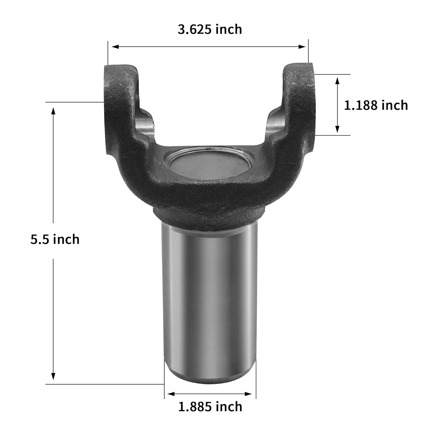 Com um encaixe para o U-Joint da série 1350, o Drive Shaft Slip Yoke possui um diâmetro de capô de 1.188″ e uma largura de 3.625″. As dimensões externas do yoke são cuidadosamente projetadas, com um comprimento de 3.625” e um diâmetro do hub de 1.885”. A linha central até o final do spline mede 5.5”, enquanto o diâmetro externo do spline é de 1.378”, com um total de 31 splines baseados em 32 splines. É importante ressaltar que, devido à semelhança na forma dos slip yokes, é fundamental verificar as dimensões e o número OE da peça original antes de realizar a compra.