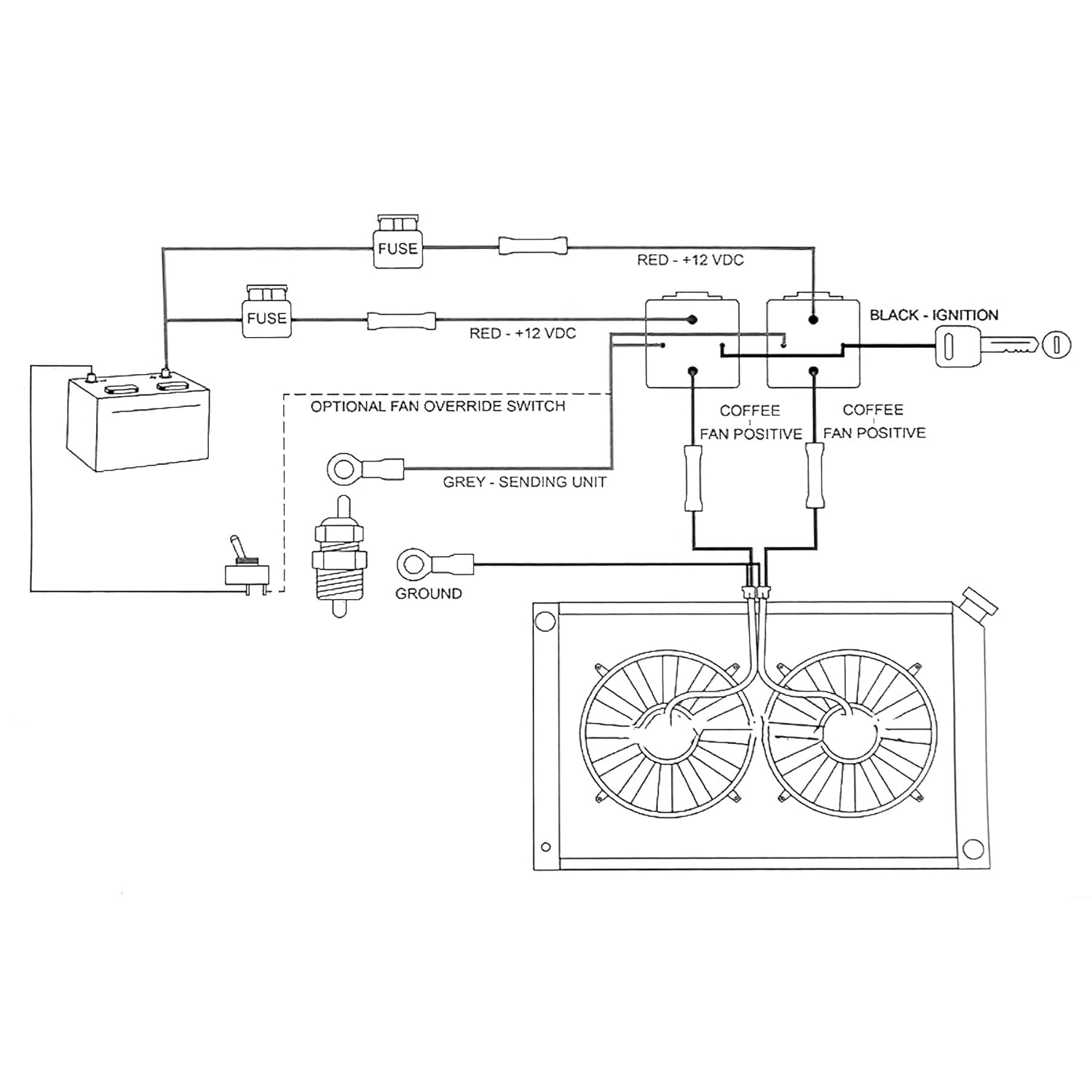 Para utilizar o Kit de Relé para Ventilador de Resfriamento Duplo, siga as instruções do diagrama de fiação incluído. Certifique-se de que todas as conexões estejam firmes e seguras. Após a instalação, o sistema irá automaticamente ativar o ventilador quando a temperatura do motor atingir 185 graus e desativá-lo ao cair para 175 graus. Para garantir a eficiência, verifique periodicamente as conexões e o estado dos fusíveis.