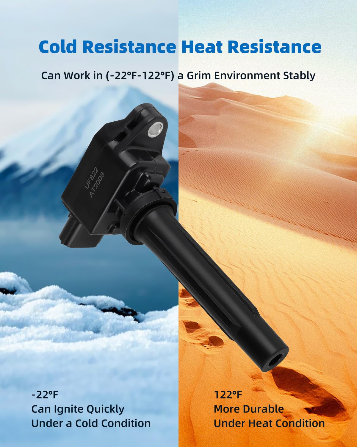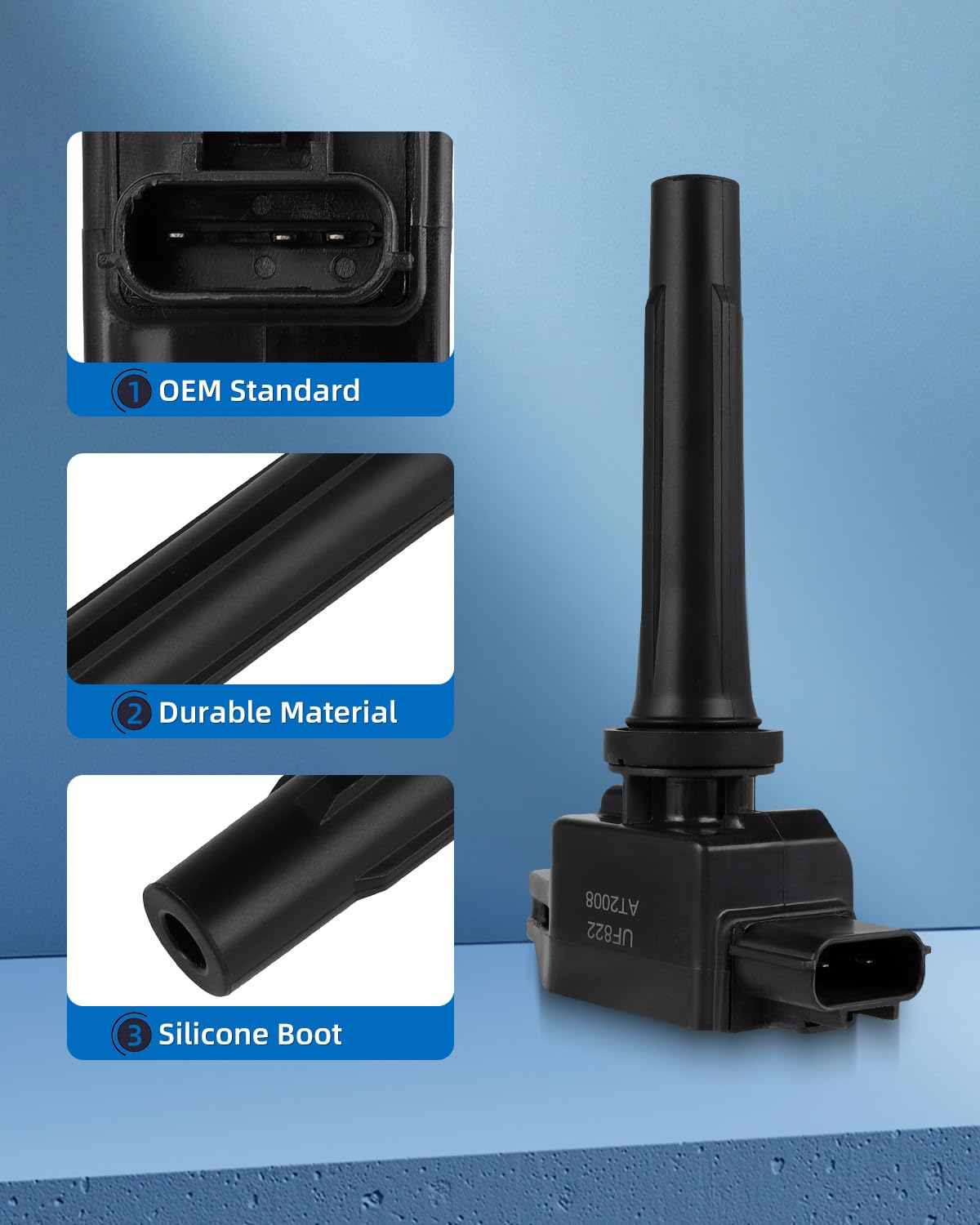 Este conjunto oferece 15% mais energia em comparação com as bobinas OE, melhorando o desempenho do motor. As bobinas de ignição fornecem a faísca necessária para o funcionamento do motor. Com o tempo, as bobinas e velas de ignição de fábrica podem falhar, levando a uma má eficiência de combustível, falhas de ignição, hesitação e acendimento das luzes de verificação do motor (CEL) e do sistema de controle de estabilidade (VSC). Recomenda-se substituir as bobinas e velas simultaneamente para garantir um desempenho superior em partidas a frio e um funcionamento mais suave do motor.