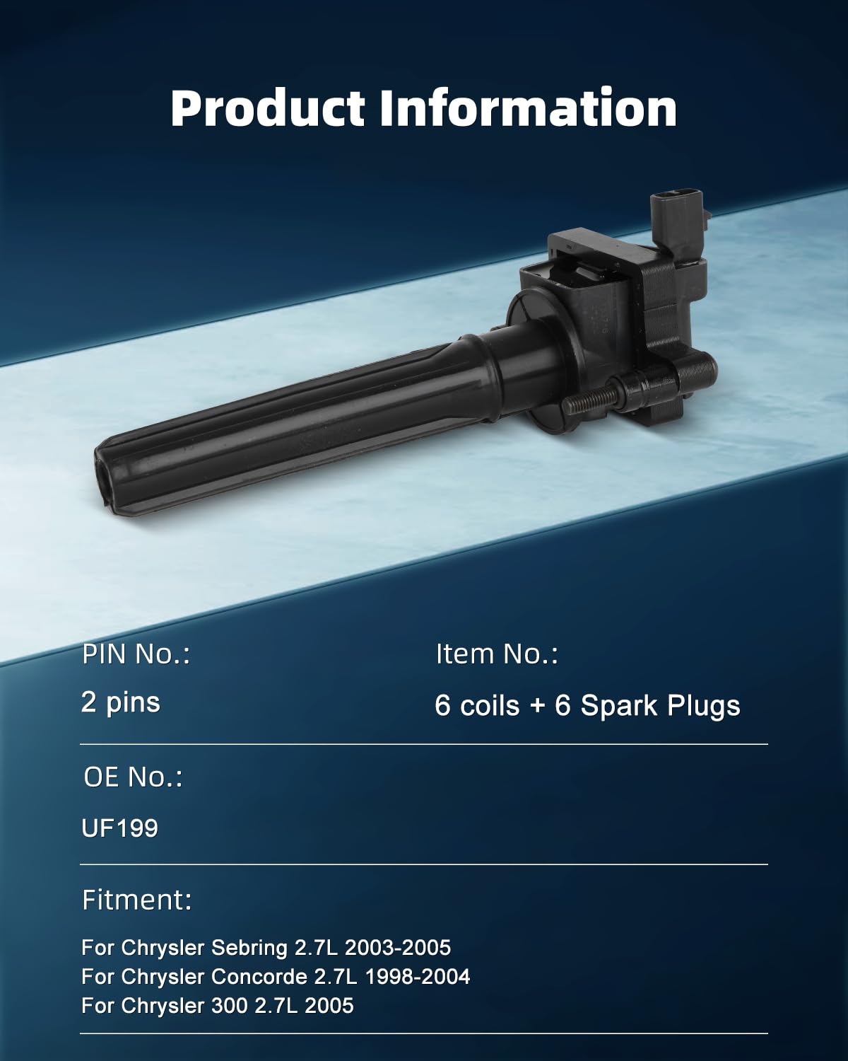 2 avaliações para Bobinas de Ignição ECCPP com 6 Velas de Ignição Iridium UF199 para Chrysler Sebring 2.7L (2003-2005), Concorde 2.7L (1998-2004) e 300 2.7L – Pacote Completo de Bobinas e Velas