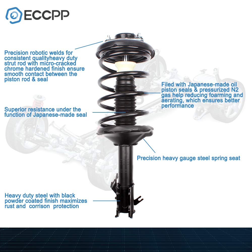 Para instalar o ECCPP Complete Struts Spring Assembly, siga as instruções do manual do veículo. É recomendável que a instalação seja realizada por um profissional qualificado para garantir a segurança e a eficácia do sistema de suspensão. Certifique-se de que todas as peças estejam corretamente alinhadas e fixadas antes de colocar o veículo em movimento.