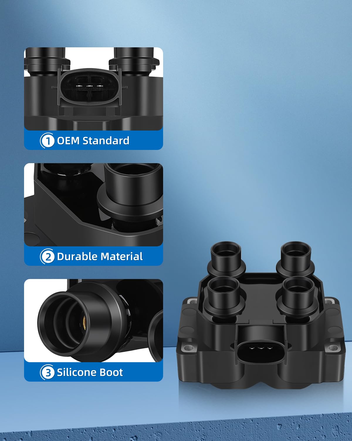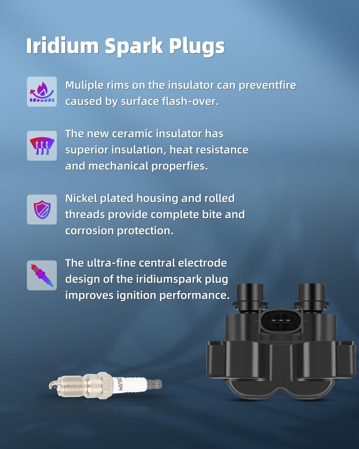 Este kit oferece 15% mais energia em comparação com as bobinas OE, melhorando significativamente o desempenho do motor. As bobinas de ignição são responsáveis por gerar a faísca necessária para o funcionamento do motor. Com o tempo, as bobinas e velas de ignição de fábrica podem falhar, levando a problemas como baixa eficiência de combustível, falhas de ignição, hesitação e acendimento da luz de verificação do motor (CEL) e luzes de aviso do VSC. Recomenda-se substituir as bobinas e velas simultaneamente para garantir um desempenho superior em partidas a frio e um funcionamento mais suave do motor.