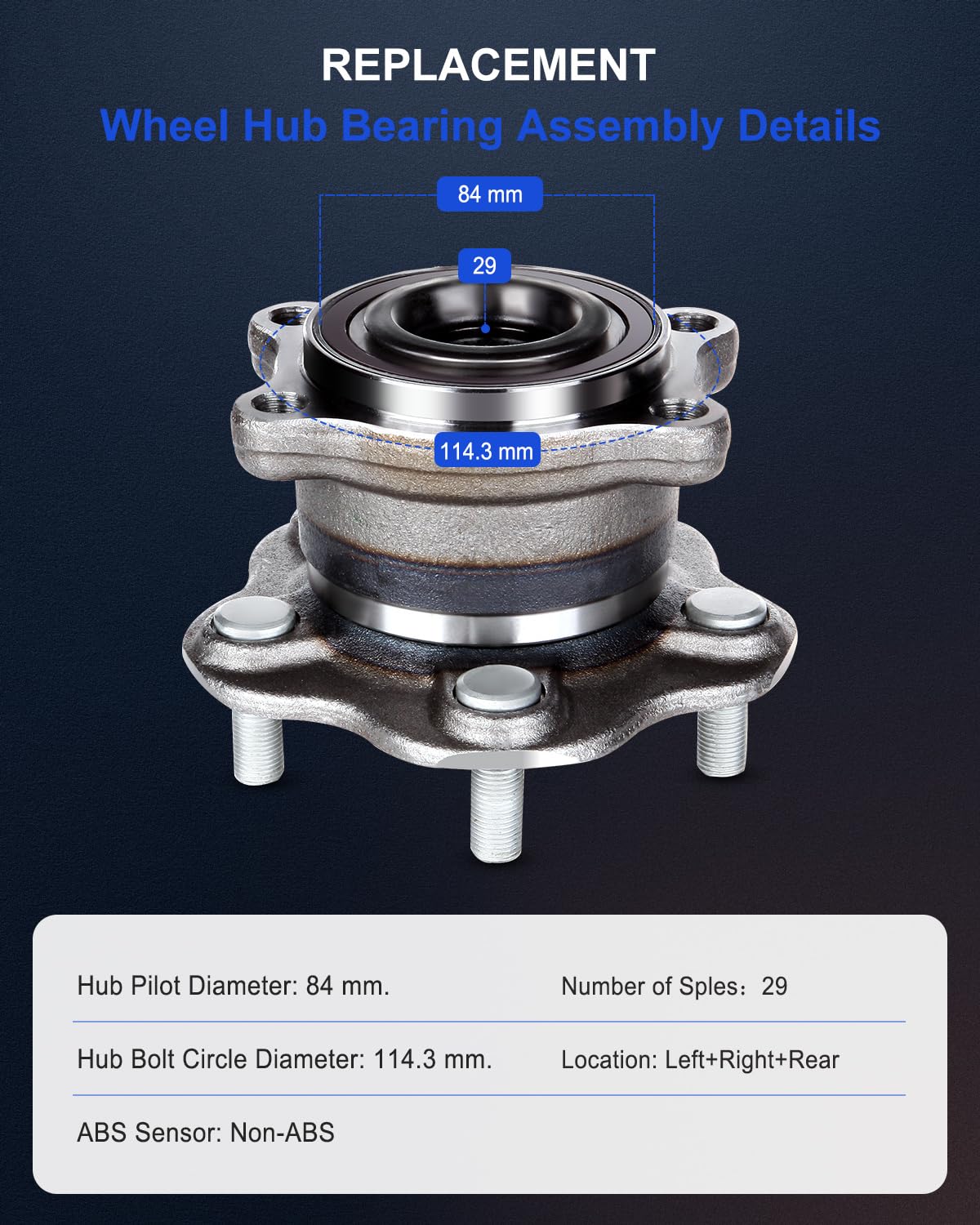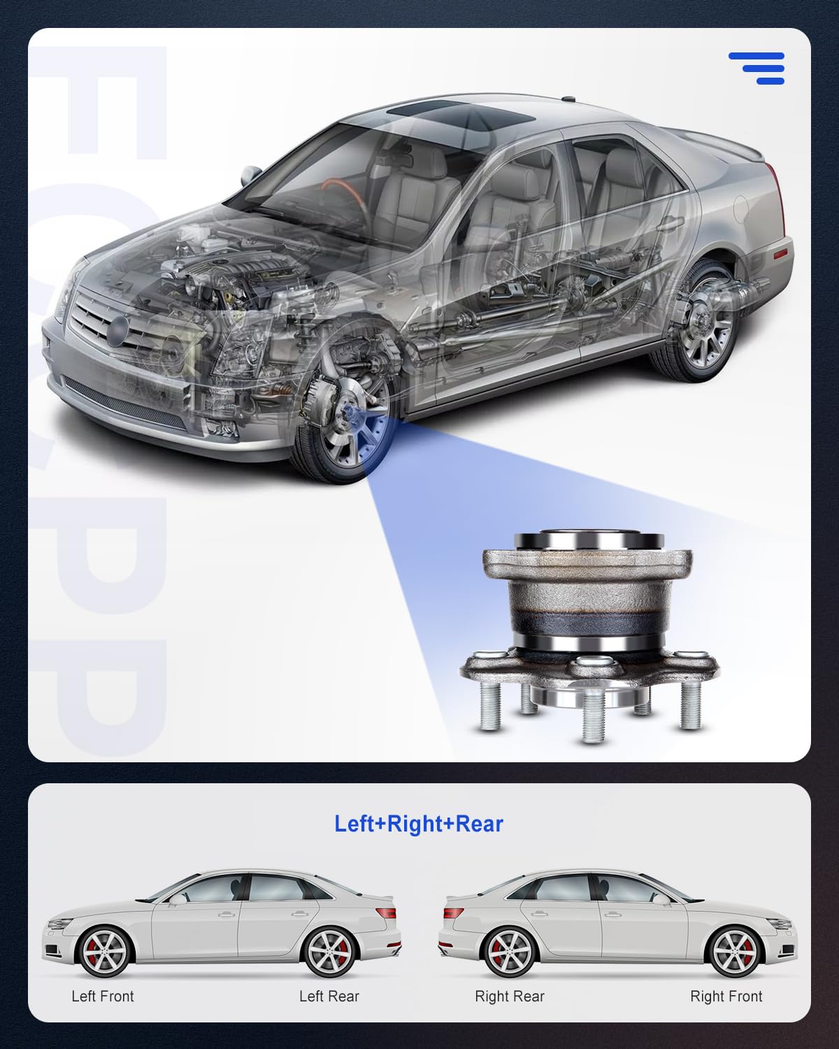 Descrição do Produto: ECCPP Substituição para Par de 2 Novos Conjuntos de Rolamento de Cubo de Roda Traseiro Completo com 5 Lugs e Fio do Sensor ABS para Nissan Murano 2003-2007
