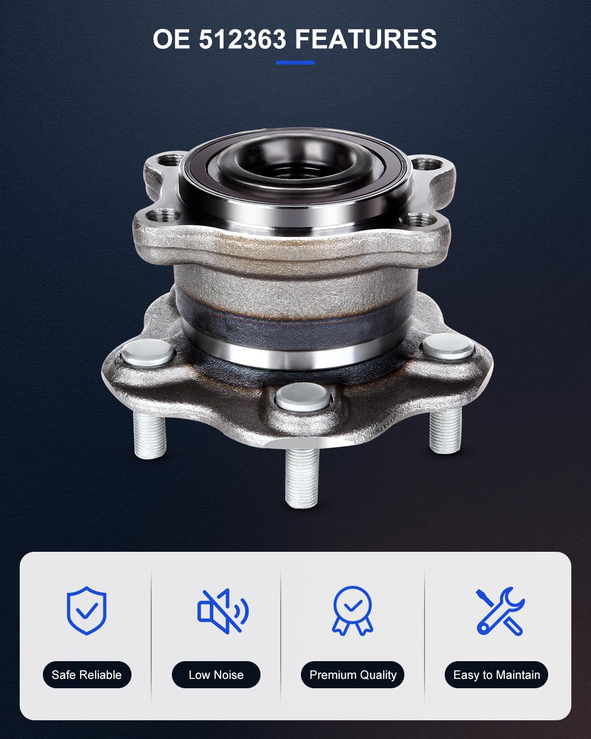 ECCPP Par de 2 Novos Conjuntos de Rolamento de Cubo de Roda Traseiro Completo 5 Lugs com ABS para Murano 2003-2007 – 512363 x2