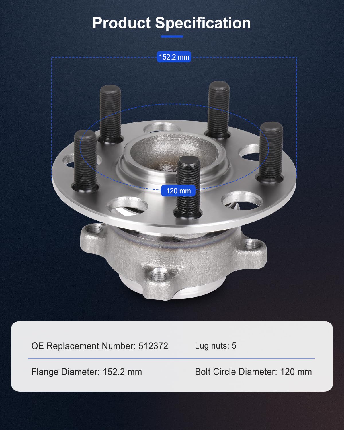 Descrição do Produto: ECCPP Conjunto de Cubo e Rolamento de Roda Traseiro 512391 para Acura TL FWD (2009-2014)