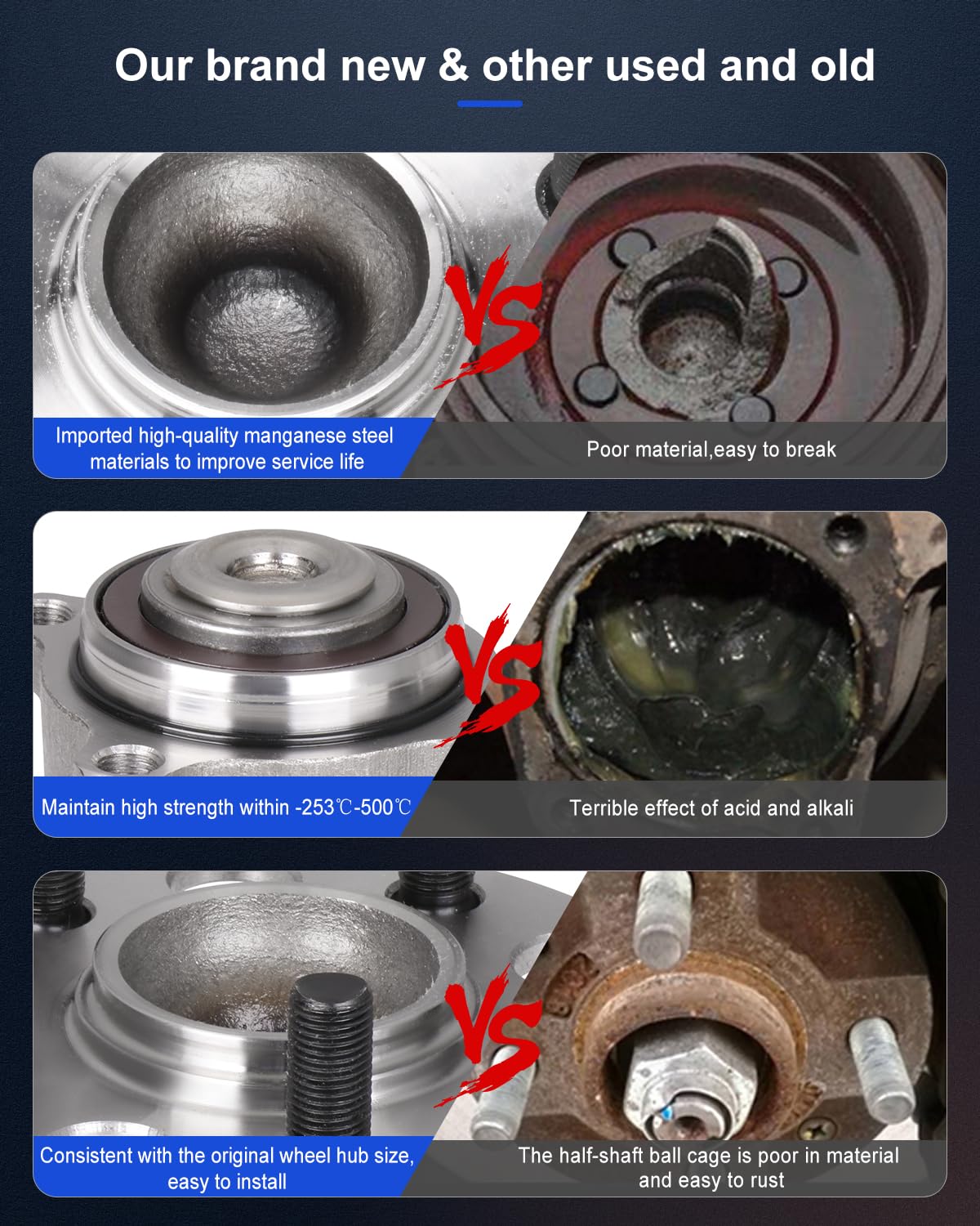 - RECURSOS PREMIUM: Os conjuntos de rolamento de roda ECCPP são fabricados com materiais de alta qualidade para garantir compatibilidade precisa, durabilidade, confiabilidade e desempenho superior. O design de vedação de alta qualidade assegura que os rolamentos do cubo permaneçam limpos, duradouros e minimizam o ruído. Os parafusos da roda possuem um revestimento protetor que facilita a desmontagem e o aperto adequado das porcas das rodas.