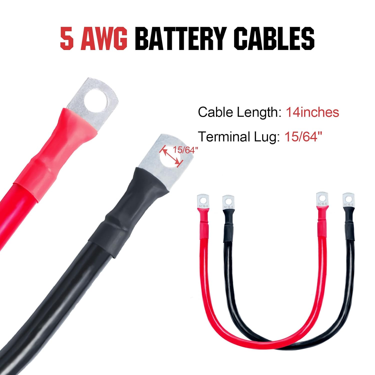 – Cabo de Bateria: 5AWG, 2 gauge, com 14 polegadas de comprimento.