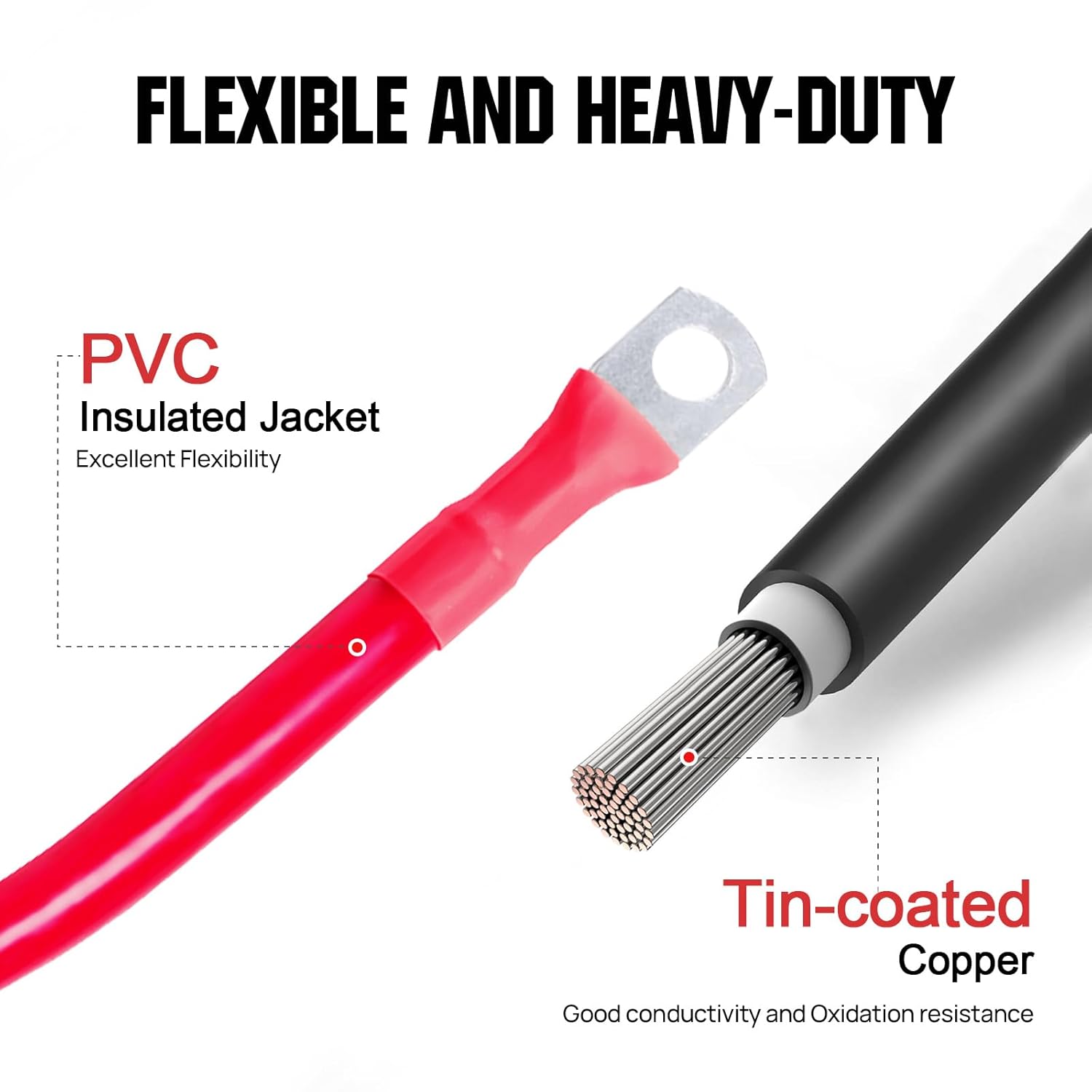 A flexibilidade dos cabos facilita a instalação e o manuseio, permitindo que sejam utilizados em uma variedade de aplicações, como cabos de bateria, cabos de aterramento e cabos de inversor para barcos, veículos e carrinhos de golfe. A versatilidade do ECO-WORTHY 5AWG o torna uma escolha indispensável para quem precisa de um desempenho confiável em qualquer situação.
