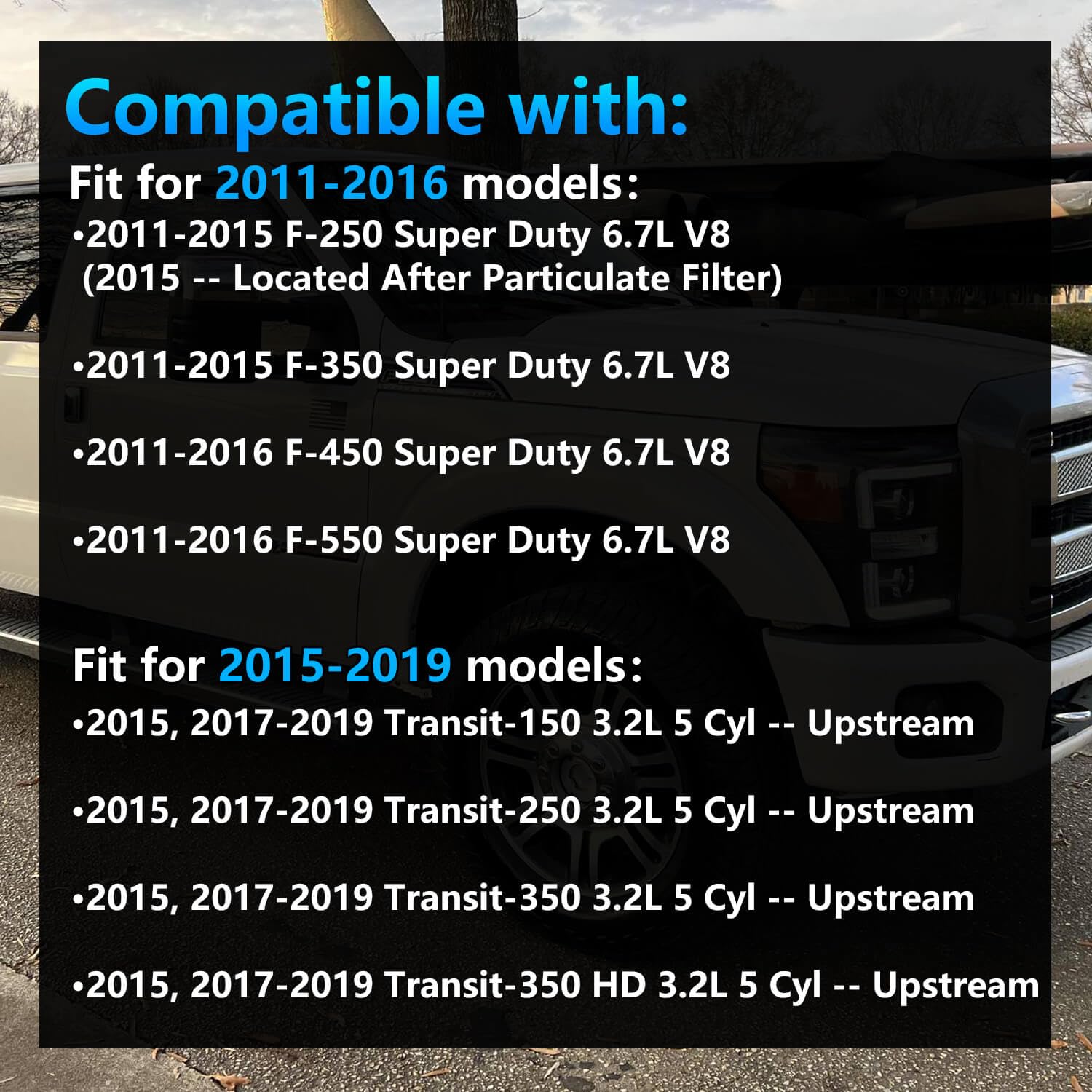– Compatibilidade: Projetado para Ford F250, F350, F450, F550 Super Duty 6.7L V8 (2011-2017) e Transit 150, 250, 350, 350HD 3.2L L5 Diesel (2015-2019).