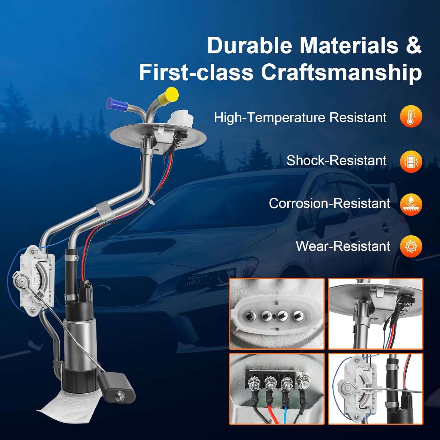 - Materiais Premium e Durabilidade: A bomba de combustível de reposição é fabricada com materiais de alta qualidade e é projetada com precisão. Todos os componentes são rigorosamente controlados e testados para atender aos padrões de durabilidade e desempenho, proporcionando confiabilidade a longo prazo e ajudando a prolongar a vida útil da bomba de combustível e do veículo.