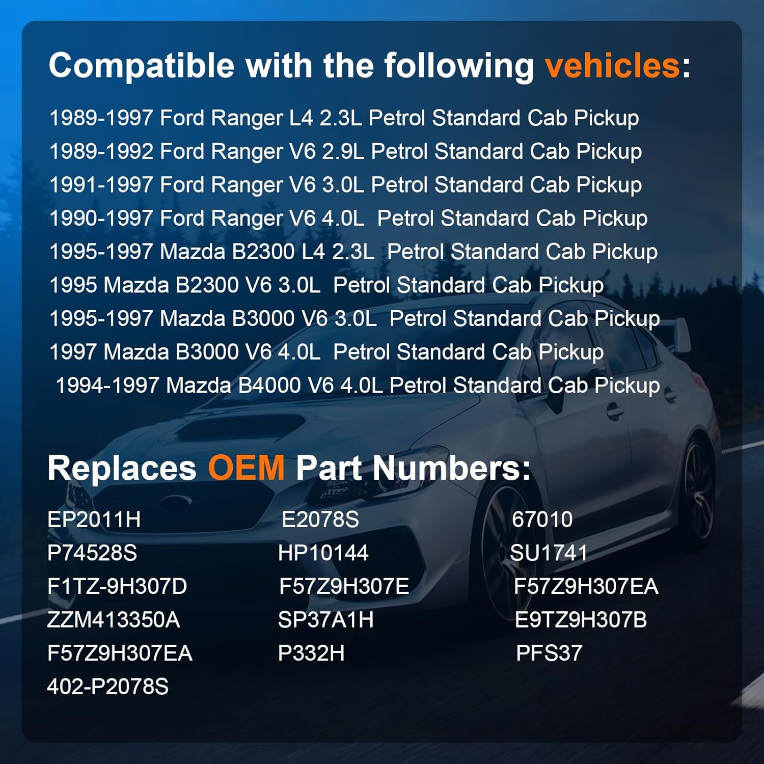 - Compatibilidade Ampla: Esta bomba de combustível é compatível com uma vasta gama de veículos, incluindo Ford Ranger de 1989 a 1997 e Mazda B2300, B3000 e B4000 de 1994 a 1997. É essencial confirmar os detalhes do seu veículo antes da compra para garantir a compatibilidade com este conjunto de bomba de combustível.