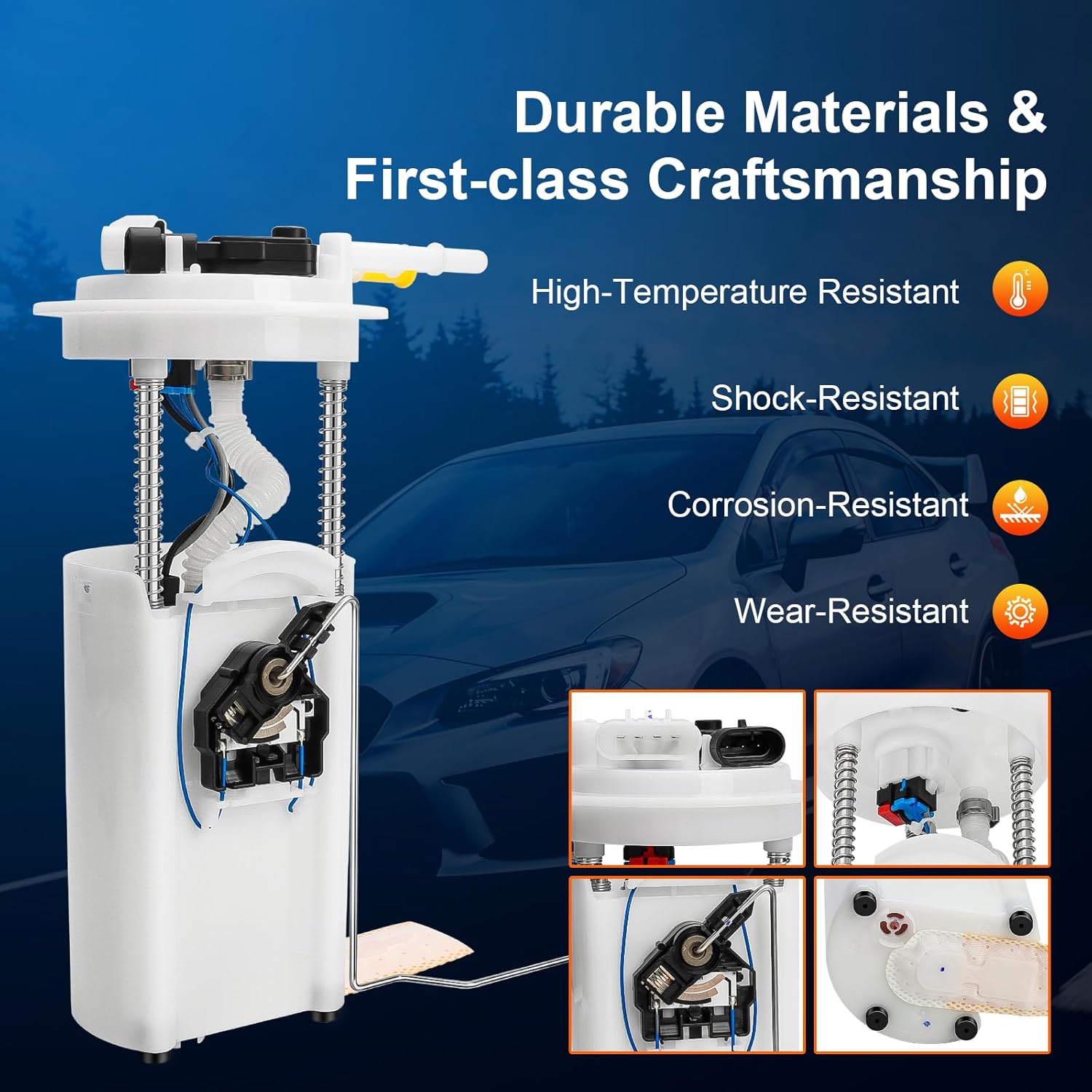 – Construção de Alta Qualidade: A bomba de combustível é fabricada com materiais de alta qualidade e projetada com precisão. Todos os componentes passam por rigorosos controles de qualidade e testes para atender aos padrões de durabilidade e desempenho, proporcionando confiabilidade a longo prazo e ajudando a prolongar a vida útil da bomba de combustível e do veículo.