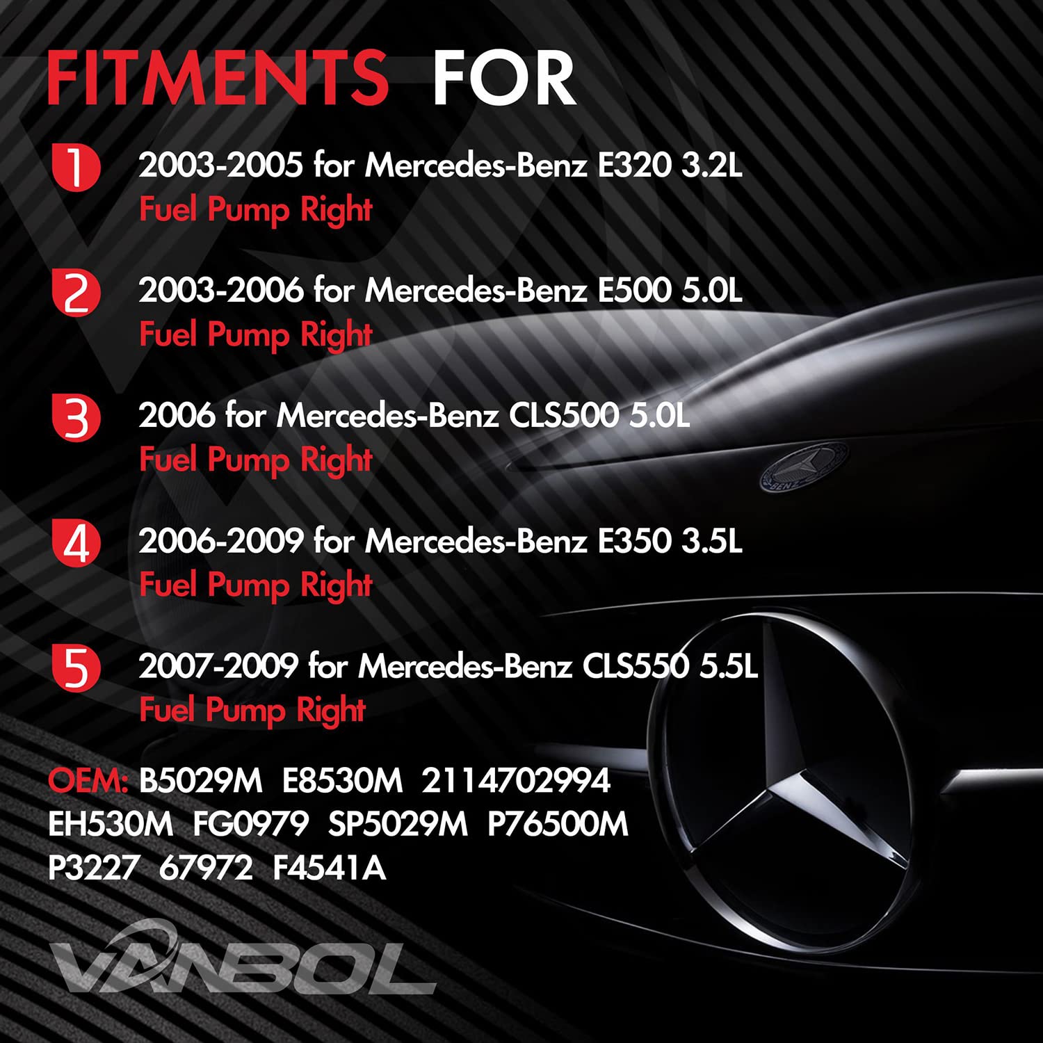 A montagem do módulo da bomba de combustível elétrica compatível com os modelos 2003, 2004 e 2005 da Mercedes-Benz E320, bem como os modelos E350, E500, CLS500 e CLS550 de 2006 a 2009, é uma solução de alta qualidade para garantir o desempenho ideal do seu veículo. Este componente, que substitui as peças W211 E8530M e B5029M, é projetado para ser instalado no lado direito do veículo e vem com um O-ring para uma vedação perfeita.