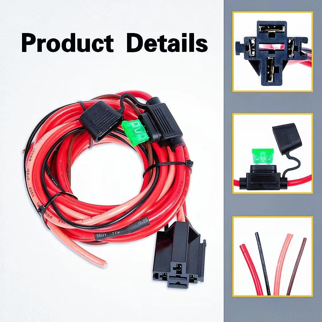 Compatível com sistemas universais de 12V, o kit pode ser utilizado em qualquer dispositivo ativado por 12V que não exceda 40 ampères contínuos. A instalação é facilitada por fios claramente rotulados e codificados por cores, além de um diagrama de fiação de fácil compreensão incluído no pacote. O kit contém um fio vermelho de 10 pés (3 metros) para a bateria de +12V, um fio laranja de 6 pés (2 metros) para a bomba de combustível, um fio marrom de 2 pés (0,6 metros) para o interruptor de acionamento de 12V e um fio preto de 4 pés (1,2 metros) para o aterramento do chassi.