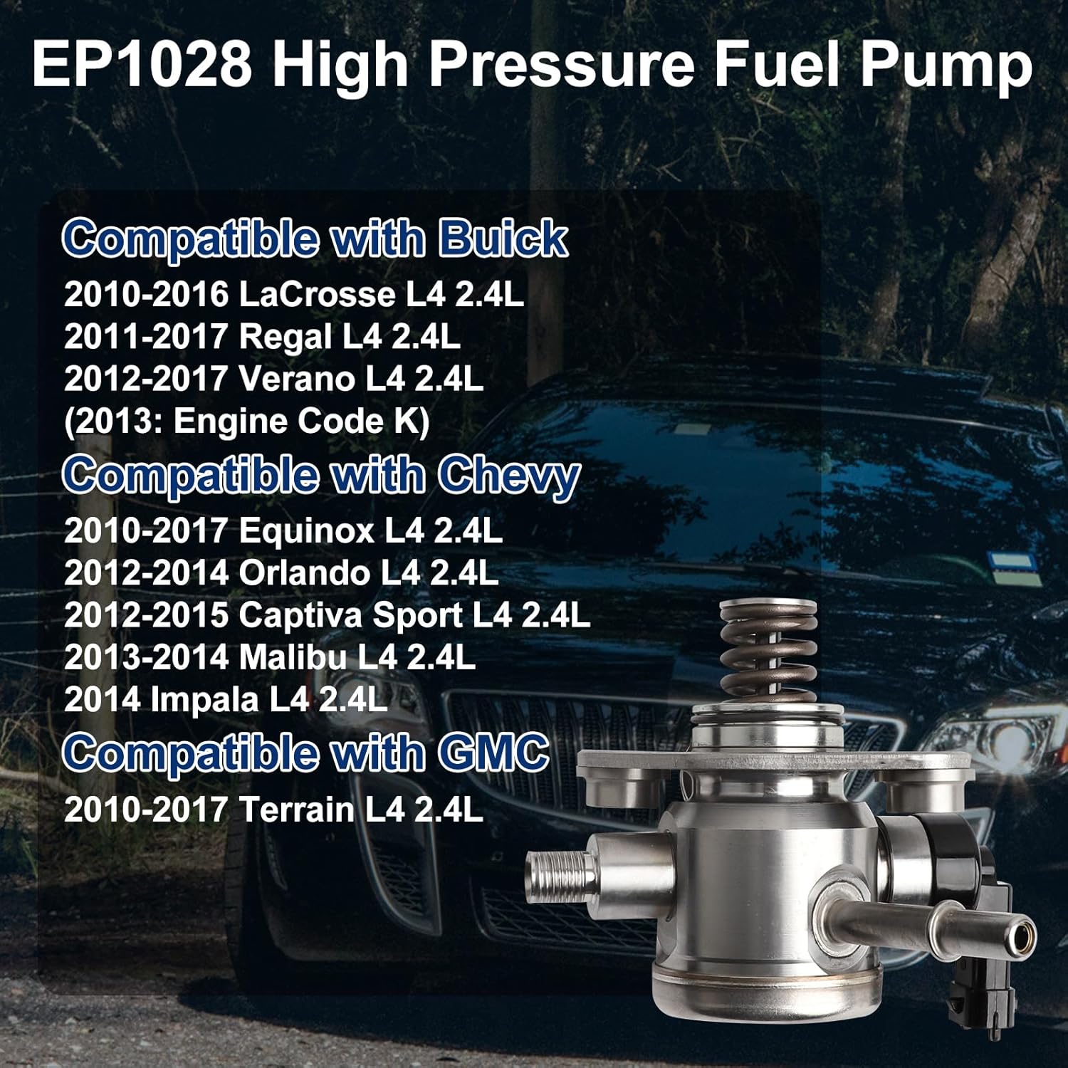 - Compatível com Buick: A Bomba EP1028 é compatível com LaCrosse L4 2.4L (2010-2016), Regal L4 2.4L (2011-2017) e Verano L4 2.4L (2012-2017, Código do Motor K em 2013).