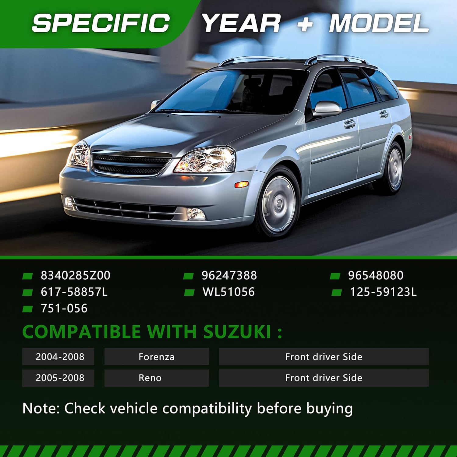 - Modelos Compatíveis: Lado do motorista, compatível com Suzuki Forenza 2004, 2005, 2006, 2007, 2008 e Reno 2005, 2006, 2007, 2008.