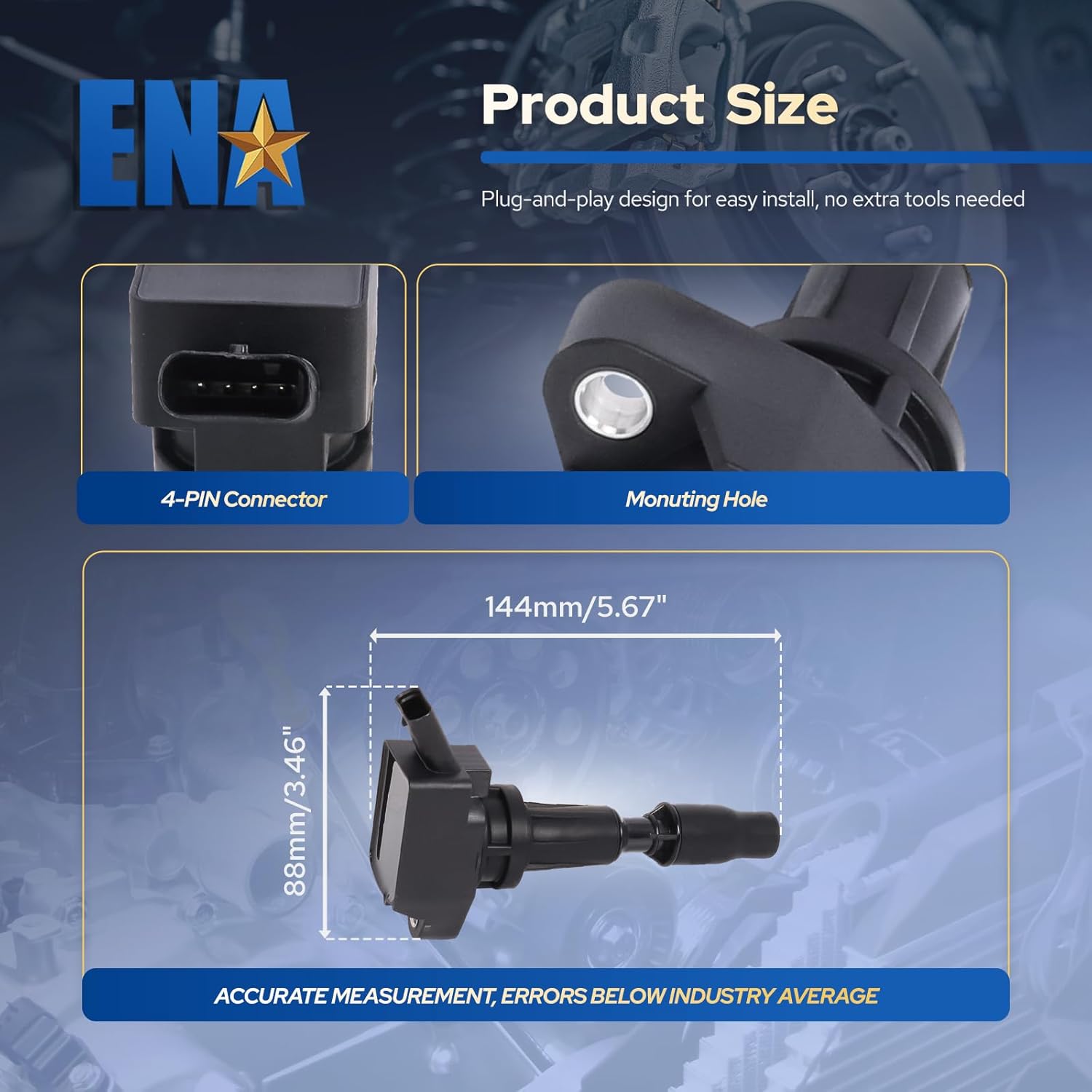 A bobina de ignição ENA é um substituto direto para os códigos 27300-2GGA0, 273002GGA0, UF764, UF-764, GN10730, C988, E1264 e IC871. Para garantir a compatibilidade correta, utilize a função Confirmar Ajuste da Amazon e insira as informações do seu veículo.