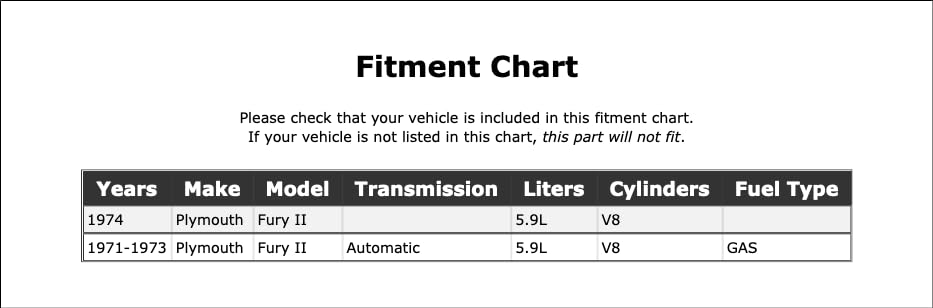 Resposta: Este harmônico foi projetado especificamente para o Plymouth Fury II 5.9L V8. Para outros modelos, consulte a galeria de imagens para verificar a compatibilidade.