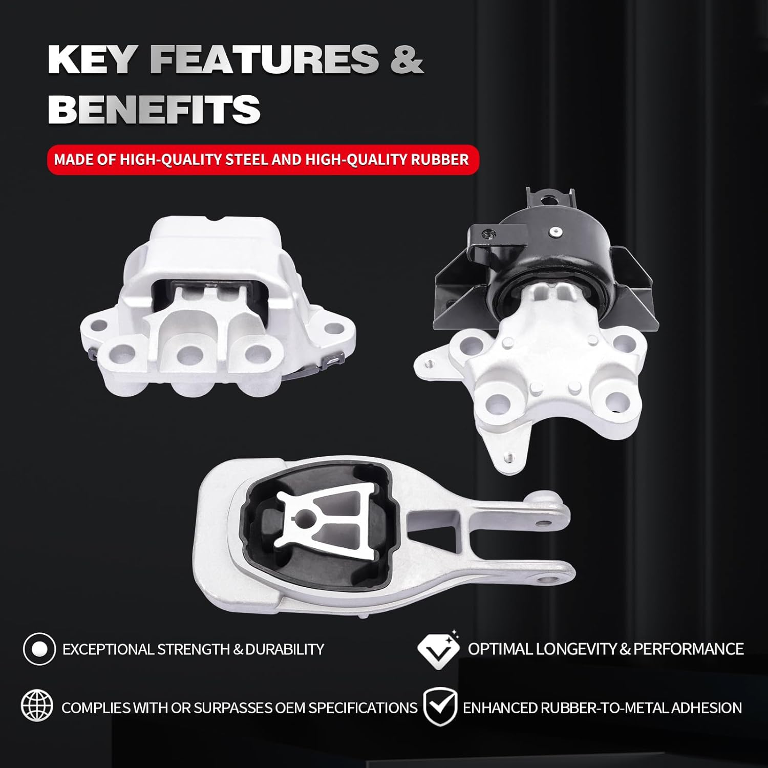 O Kit de Suportes de Motor e Transmissão é a solução ideal para quem busca qualidade e durabilidade em componentes automotivos. Sempre fomos reconhecidos como o fabricante de mais alta qualidade de suportes de motor e transmissão, utilizando apenas matérias-primas de primeira linha. Nossas instalações contam com o mais avançado equipamento de laboratório para testes, garantindo que a qualidade do produto possa substituir completamente as peças originais (OE). Este suporte de motor e transmissão é um substituto direto para o suporte de fábrica em transmissões automáticas, assegurando que ele se encaixe, funcione e tenha a mesma aparência do suporte original.