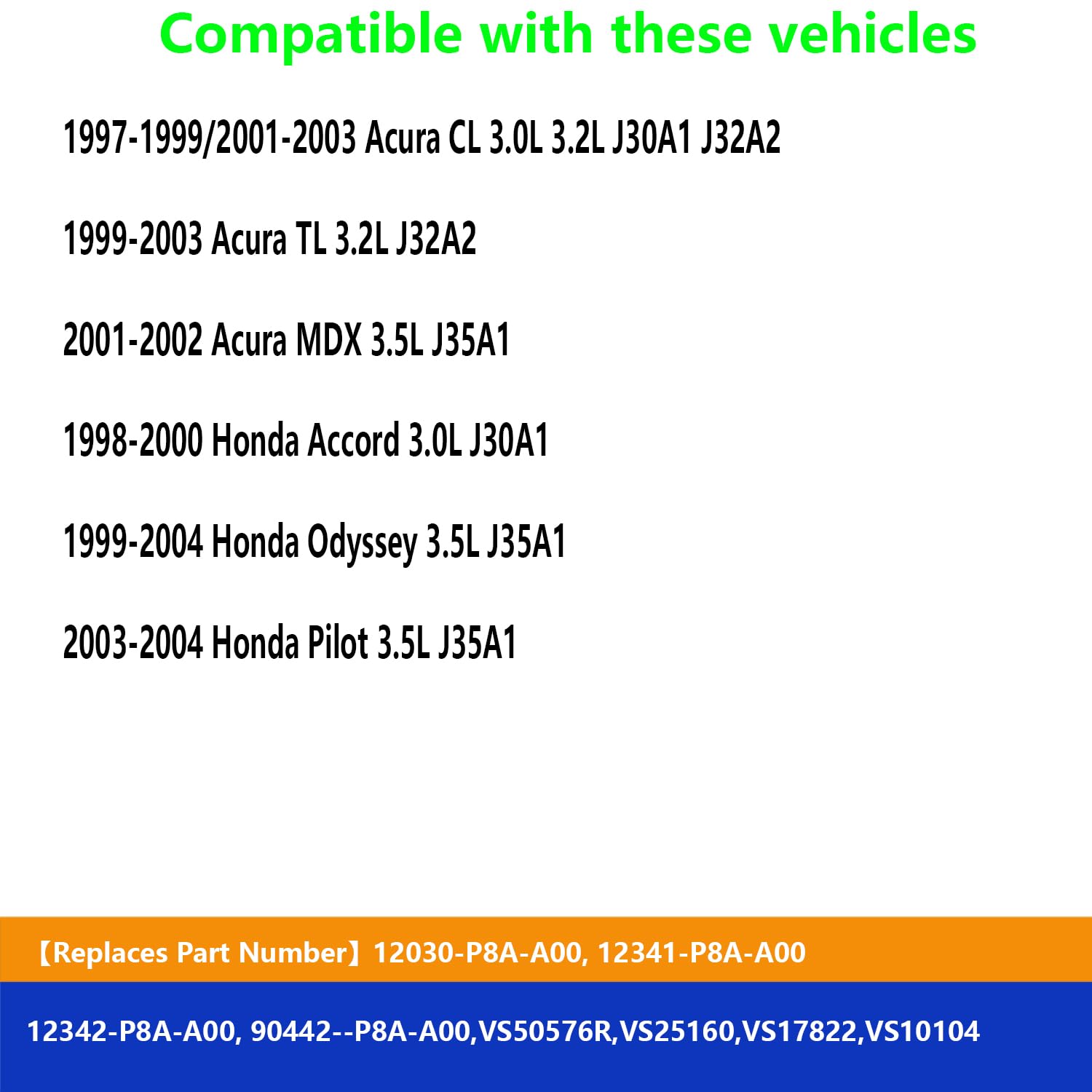 - Substitui o Número da Peça: 12030-P8A-A00, 12341-P8A-A00, 12342-P8A-A00, 90442–P8A-A00, VS50576R, VS25160, VS17822, VS10104.