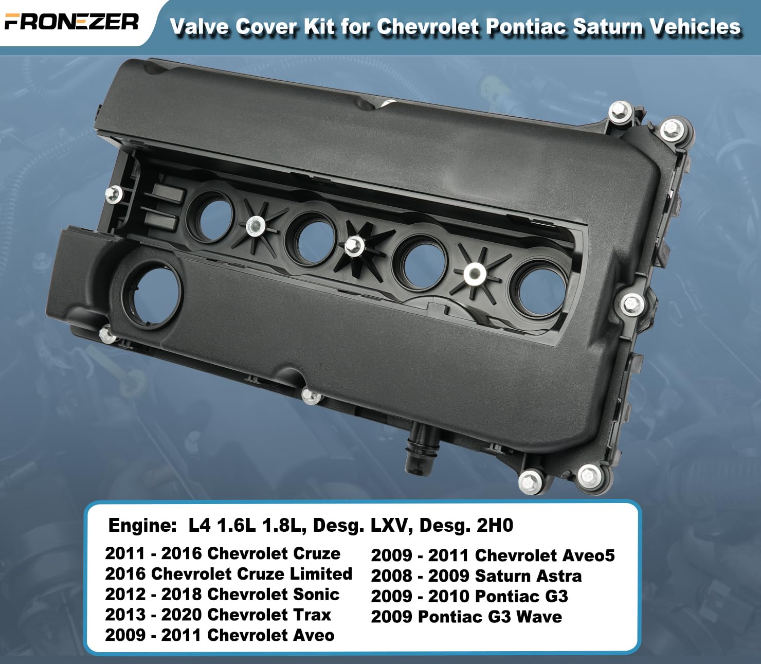 A tampa de válvula do motor com juntas, parafusos e tampa de óleo, compatível com os modelos 2011-2020 do Chevrolet Cruze, Sonic, Trax, Aveo, 2008-2009 do Saturn Astra e 2009-2010 do Pontiac G3, é a solução ideal para quem busca qualidade e durabilidade em peças automotivas.