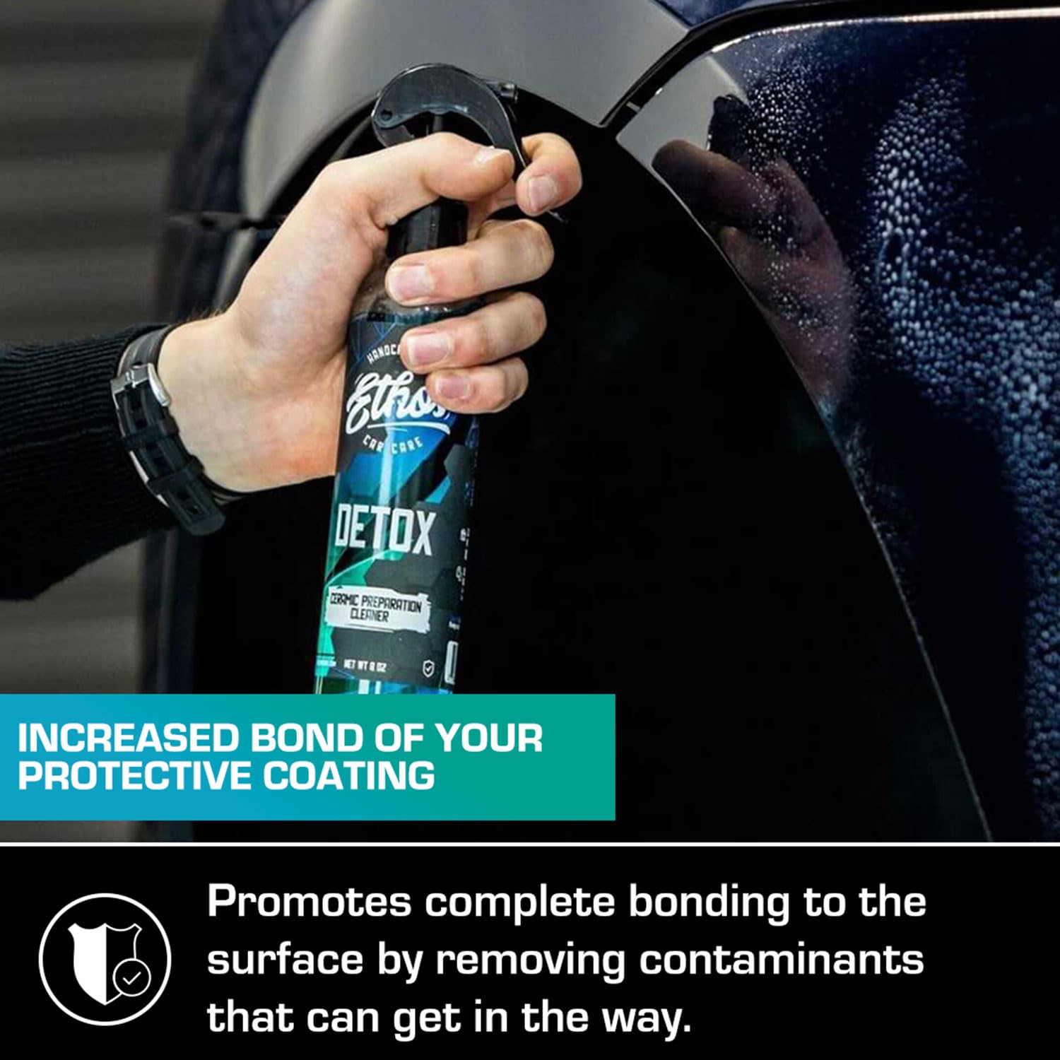 A fórmula única de duas partes do Ethos Detox, que muda de cor entre azul e verde, é capaz de remover completamente resíduos, ceras e selantes. Ao eliminar graxas, óleos e contaminantes, o produto deixa um acabamento limpo e pronto para receber a proteção desejada. Isso é crucial, pois a nova camada de proteção precisa se ligar diretamente à superfície do veículo, sem impurezas que possam comprometer sua eficácia.